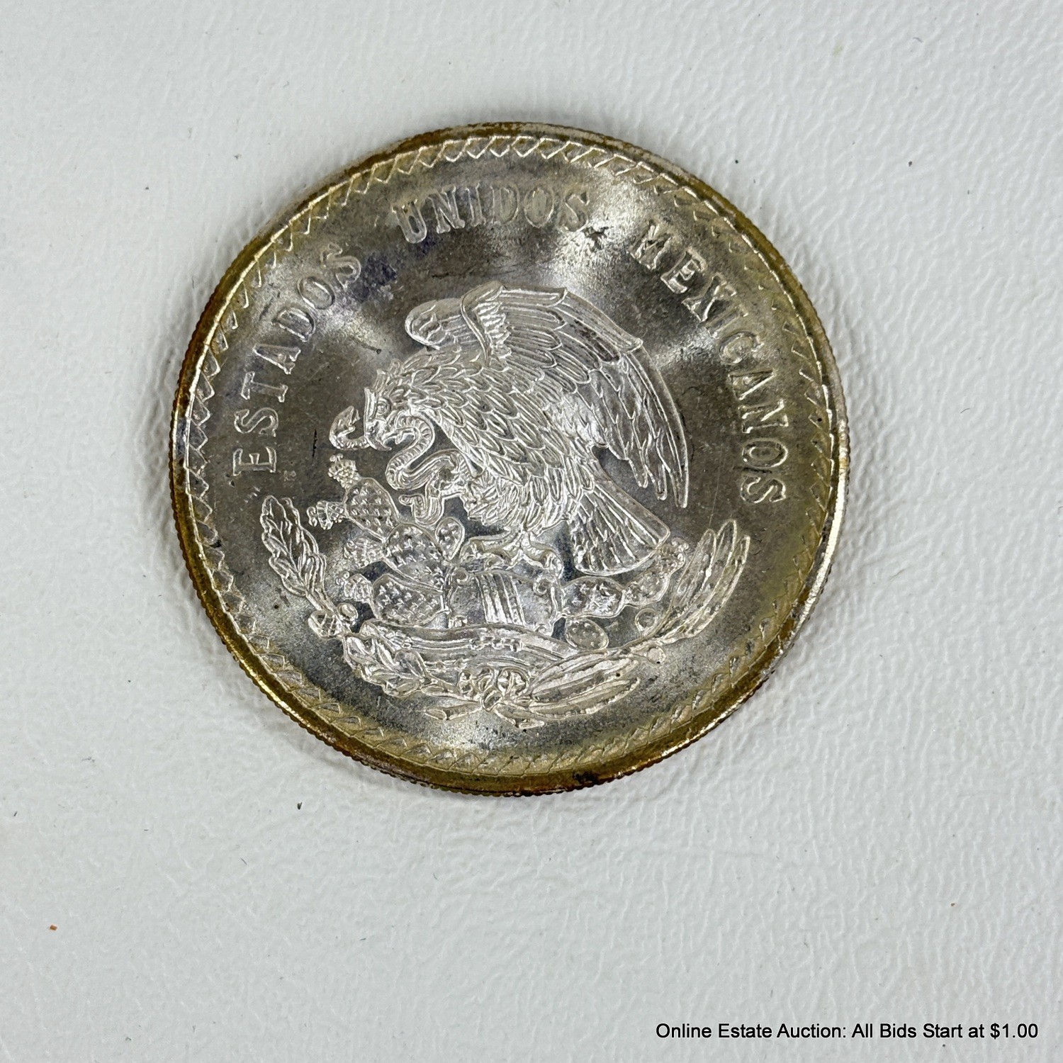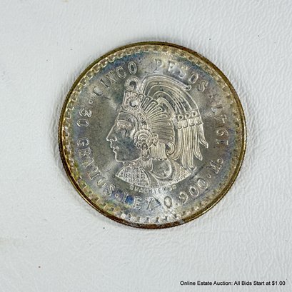 1947 Ungraded and Circulated Mexican 90% Five Peso Cuauhtemoc Coin