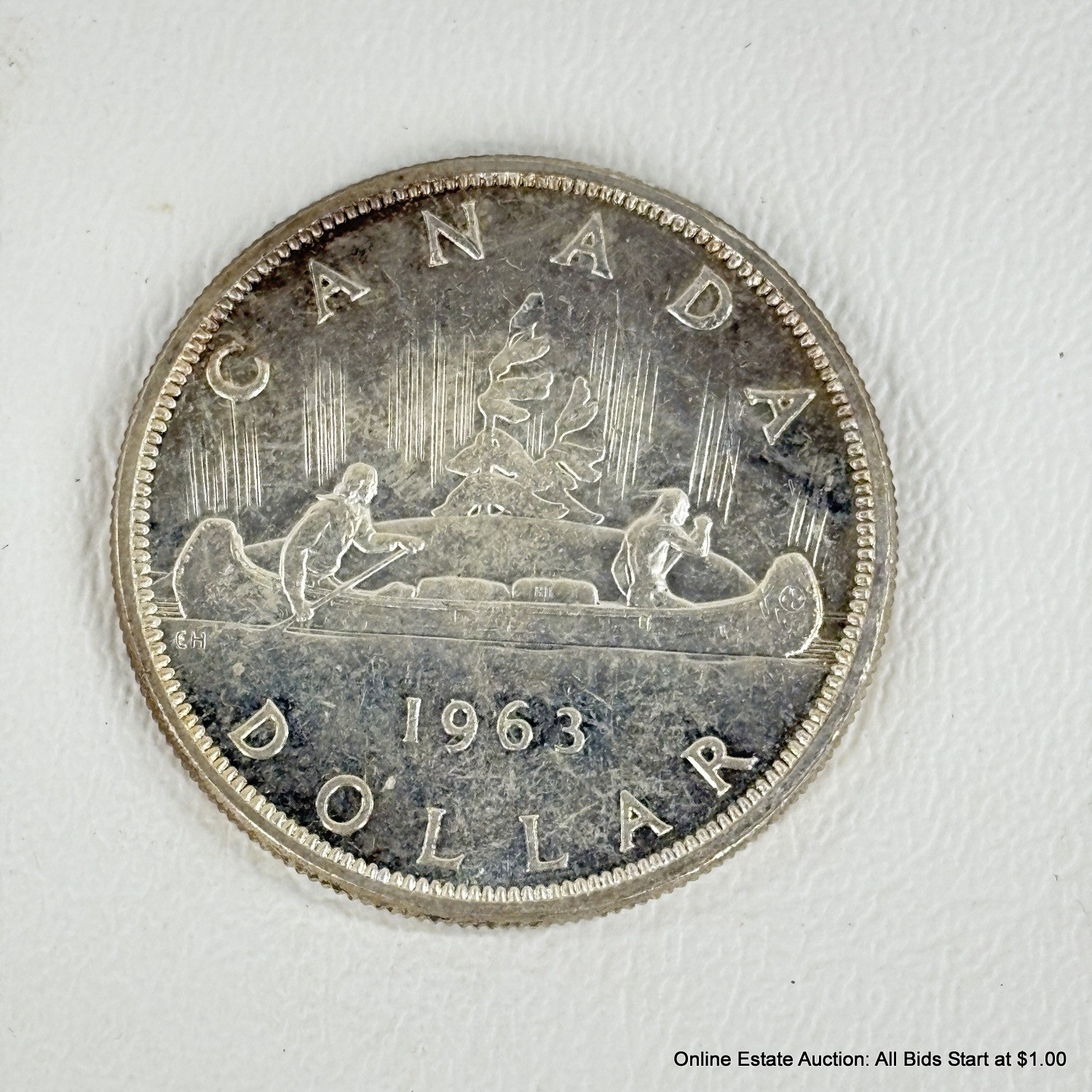 1963 80% Silver Ungraded and Circulated Canadian One Dollar Coin
