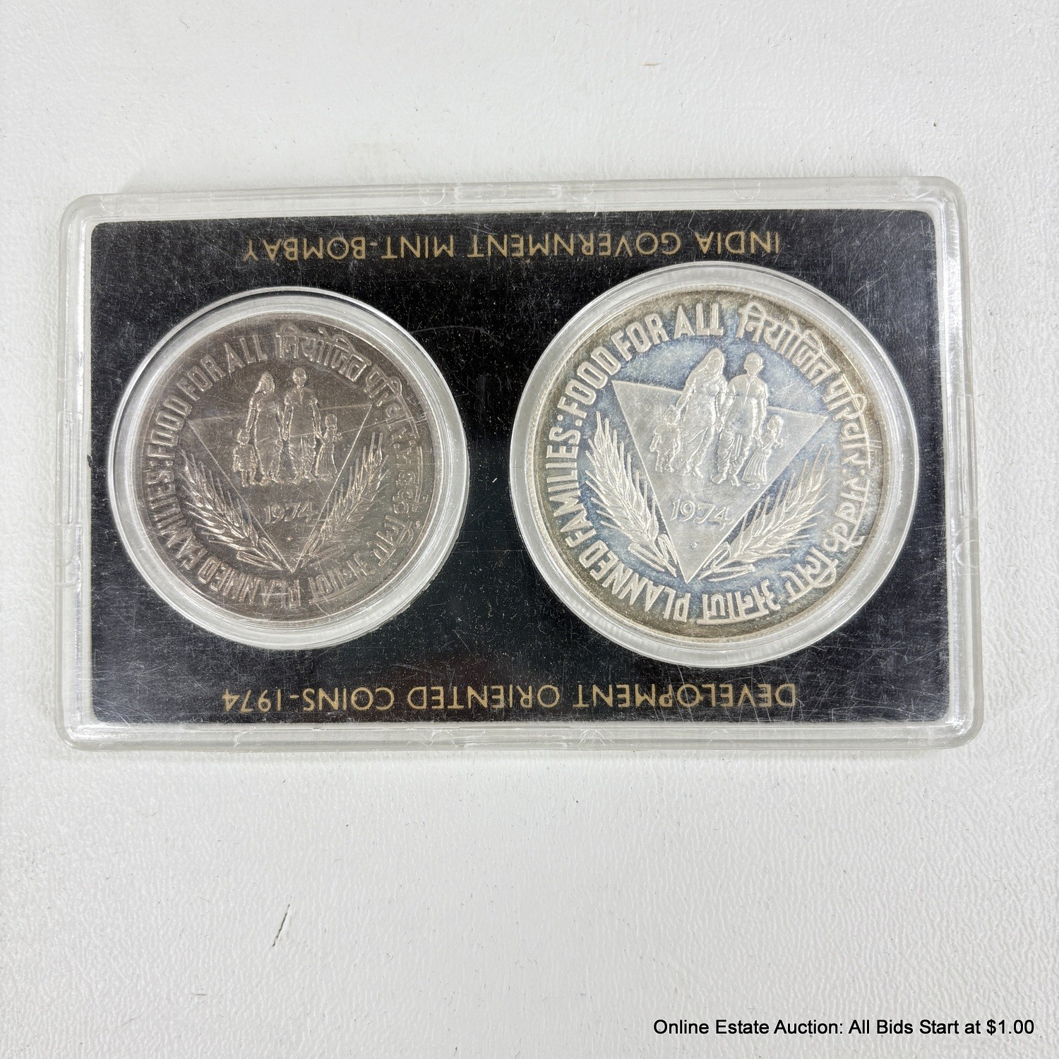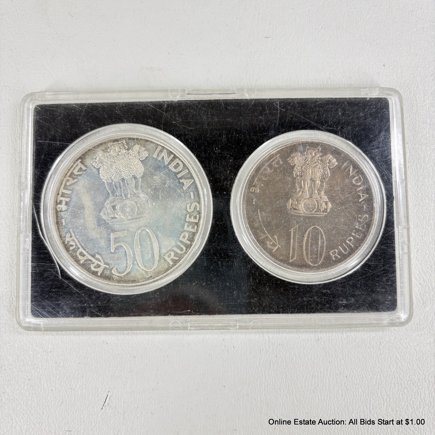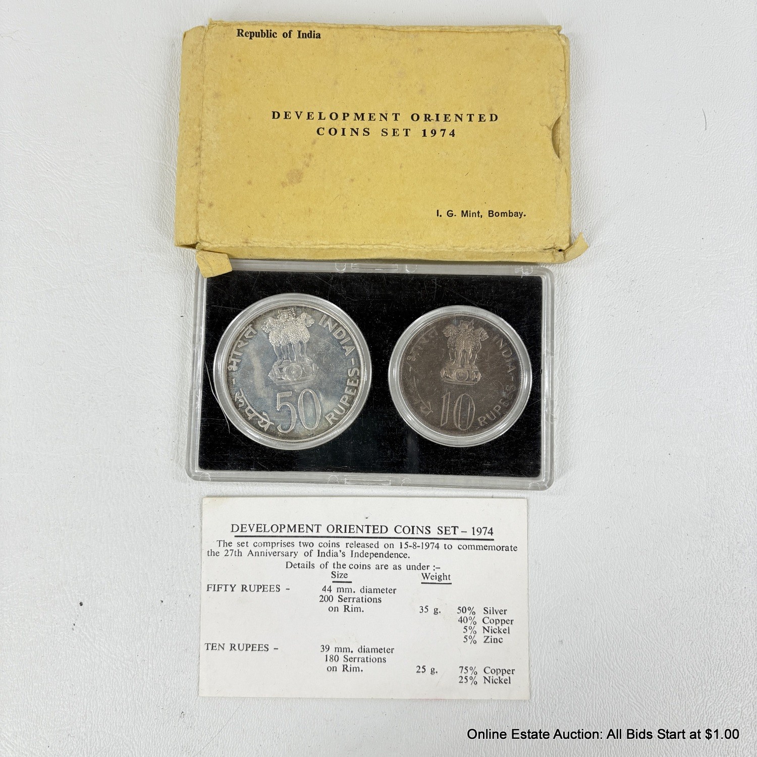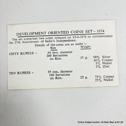 1974 Republic Of India Development Oriented Coin Set Of 50% Fifty Rupee and 76% Copper Ten Rupee