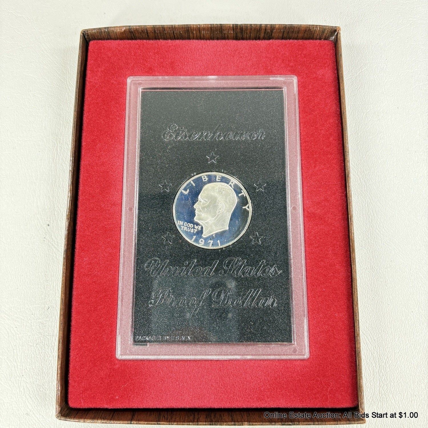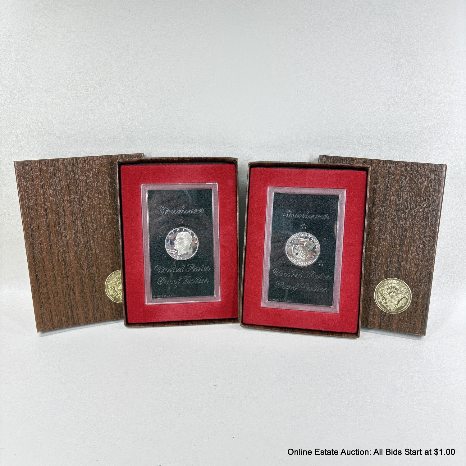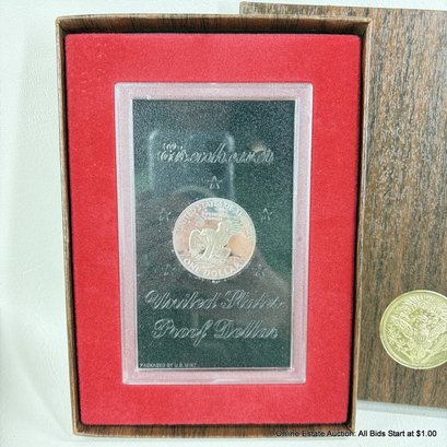 2 1971 Eisenhower S 40% Silver One Dollar Proof Coins Housed In Sealed Capsules and Outer Boxes
