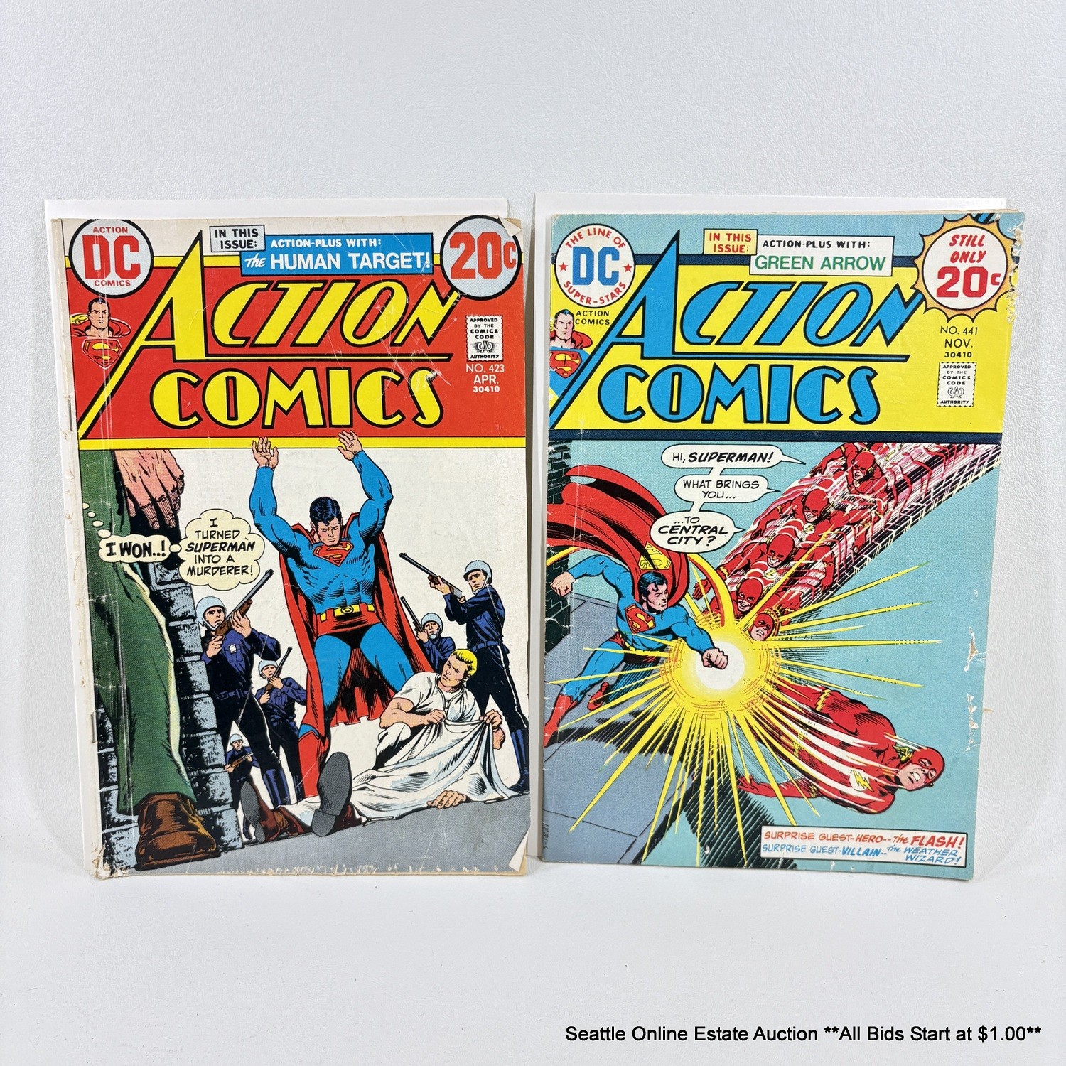 2 DC Action Comics Comic Book No. 423, 441 With 20 Cent Price Cover