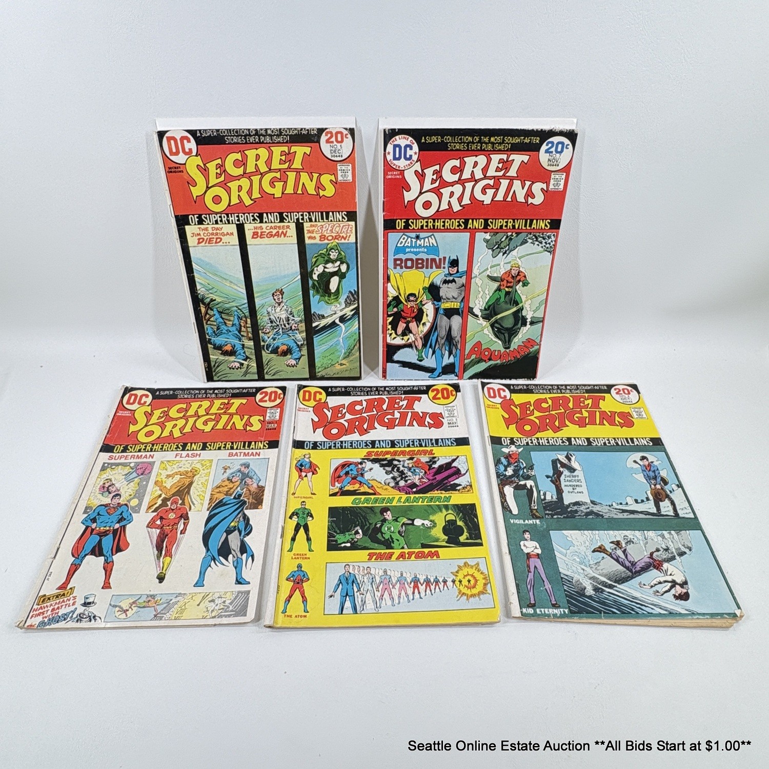 2 DC Secret Origins Comic Book No. 1, 2, 4, 5, 7 With 20 Cent Price Cover