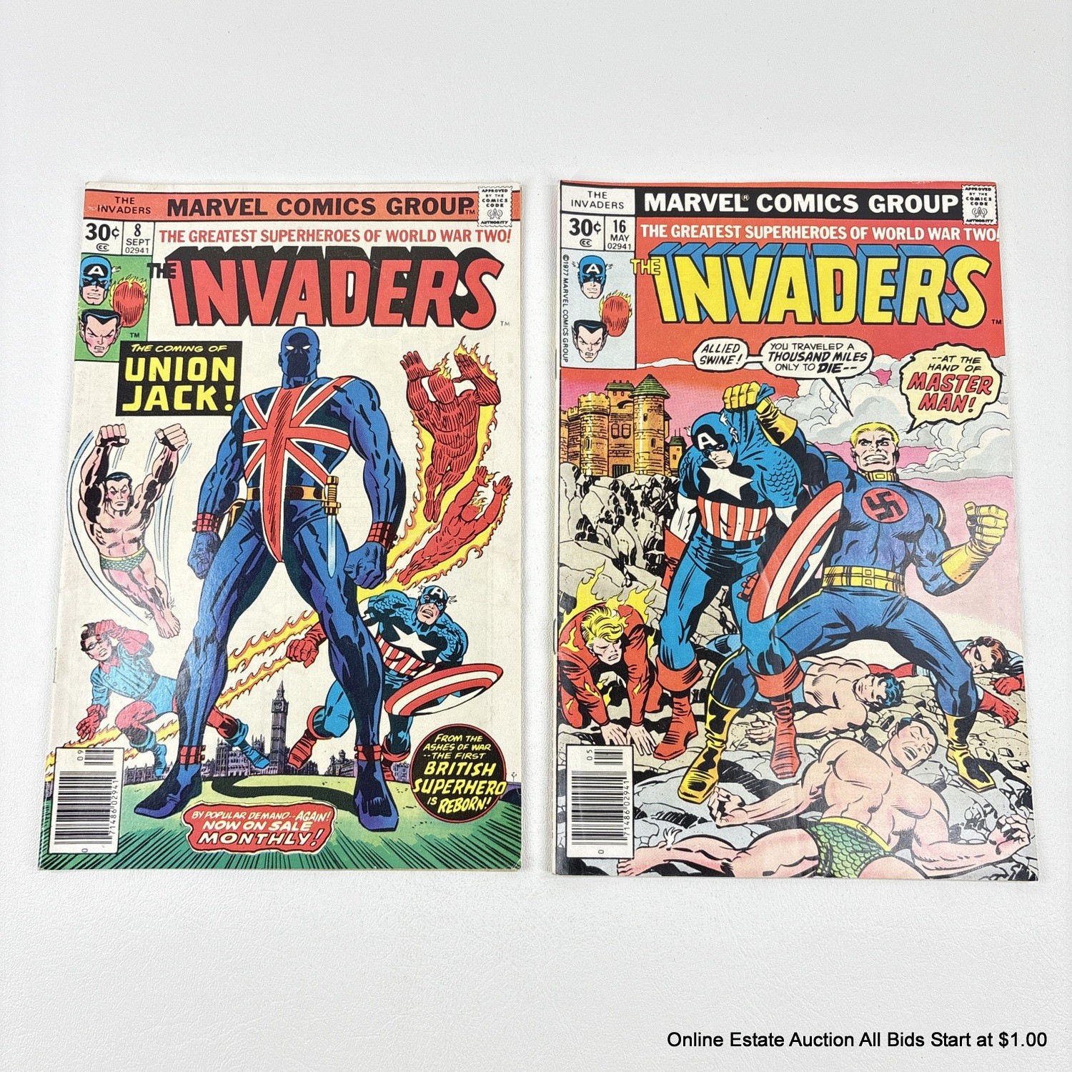 2 Marvel The Invaders Comic Book No. 8, 16 With 30 Cent Price Covers