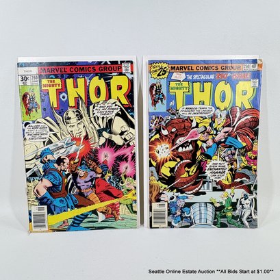 2 Marvel The Mighty Thor Comic Book No. 250, 260 With 25 and 30 Cent Price Cover