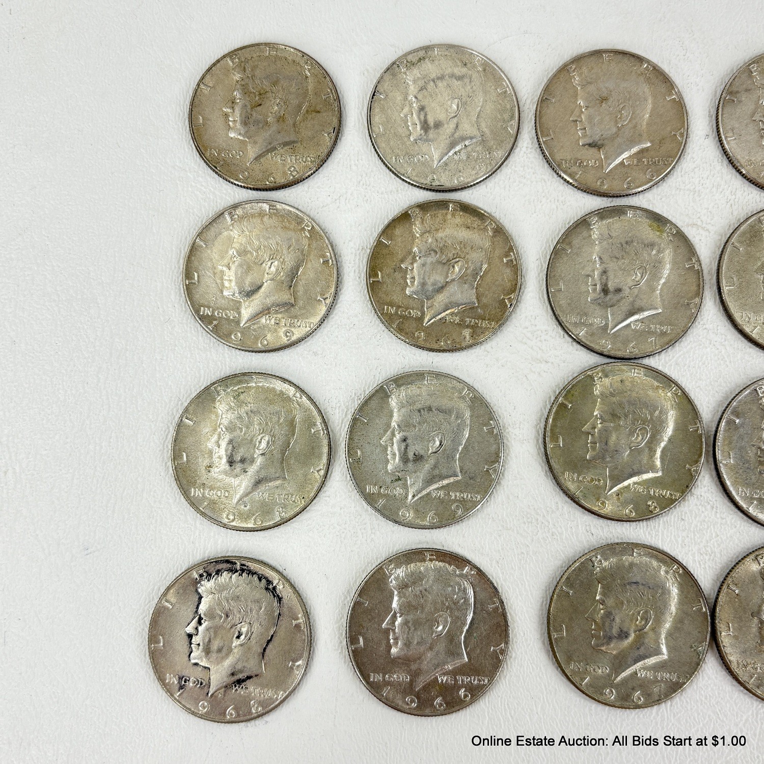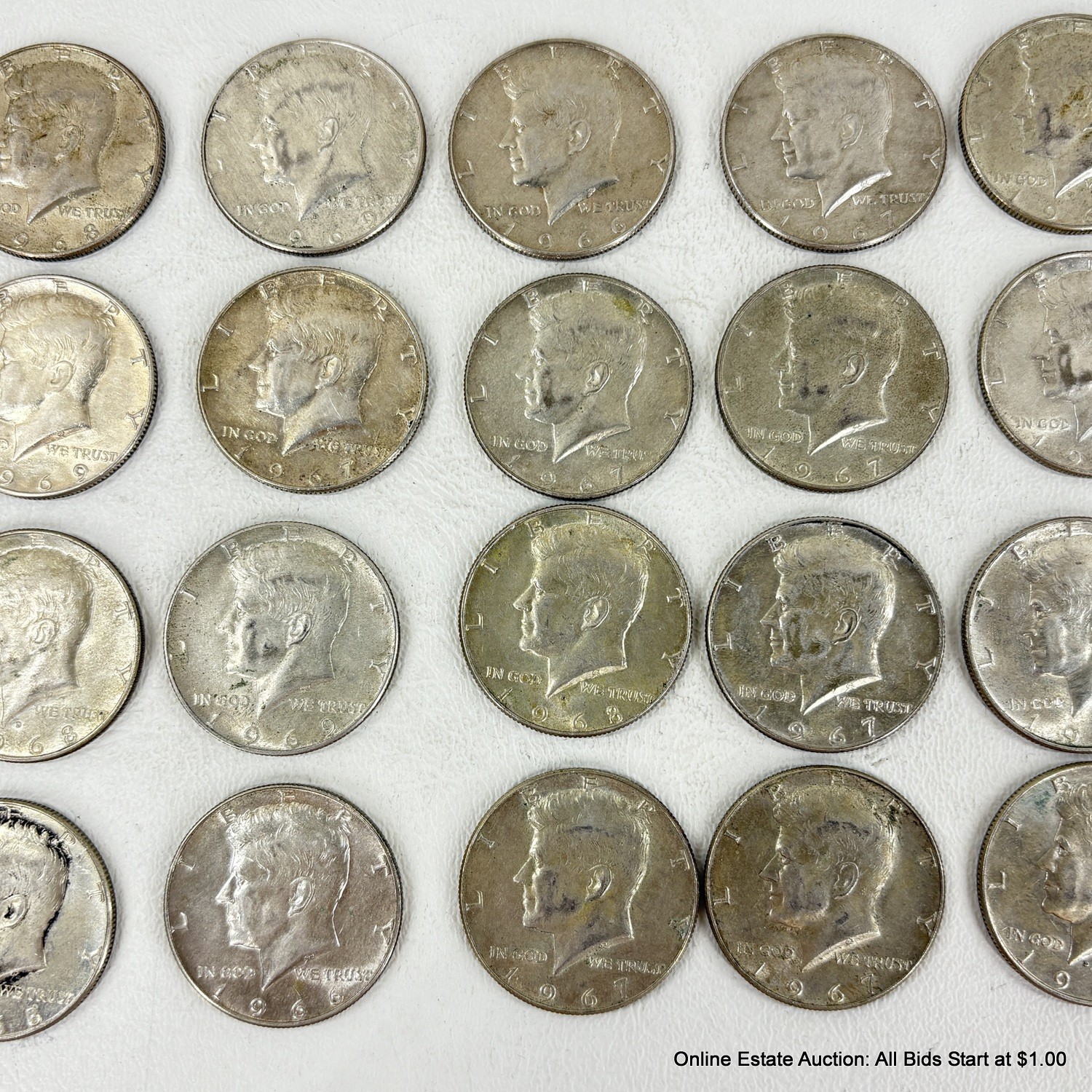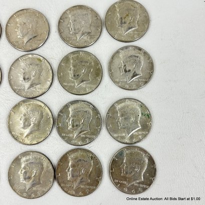 20 Kennedy Half Dollars 1966-1969, Ungraded and Circulated