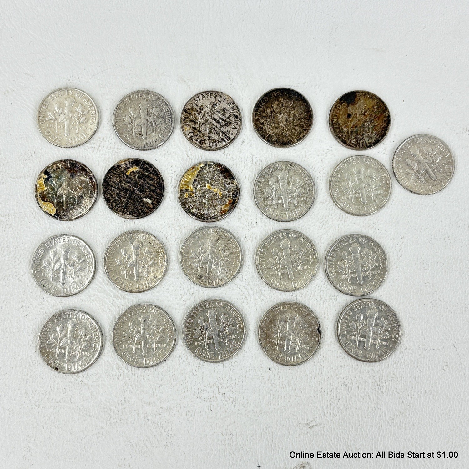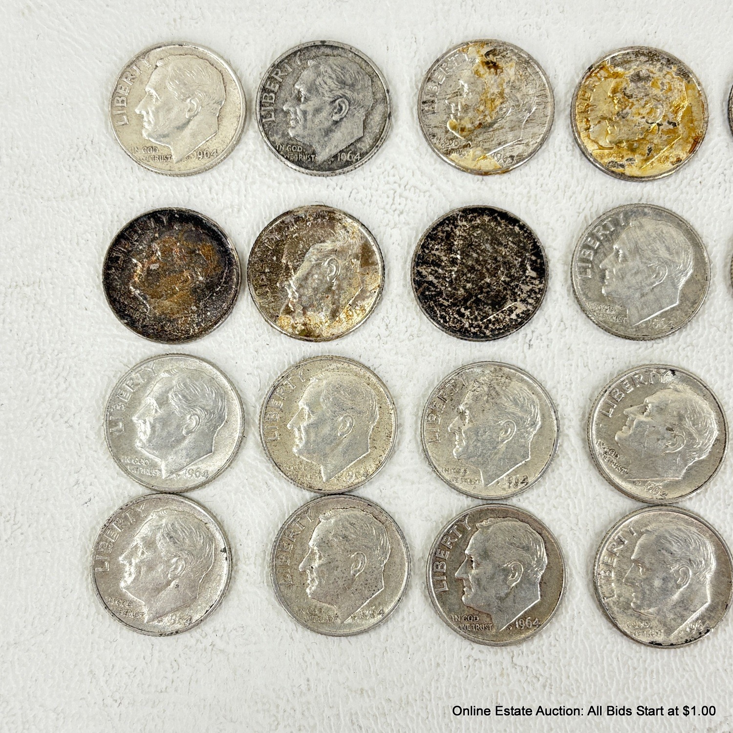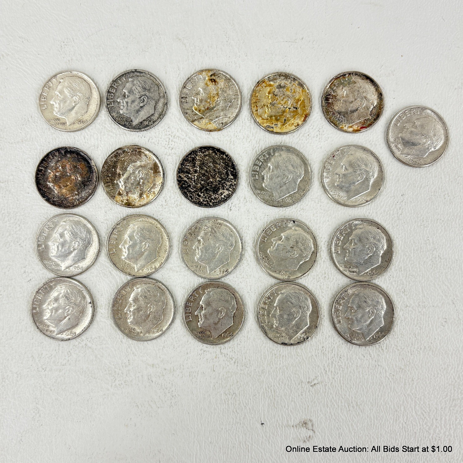21 U.S. Dimes 1963-1964 Ungraded and Circulated