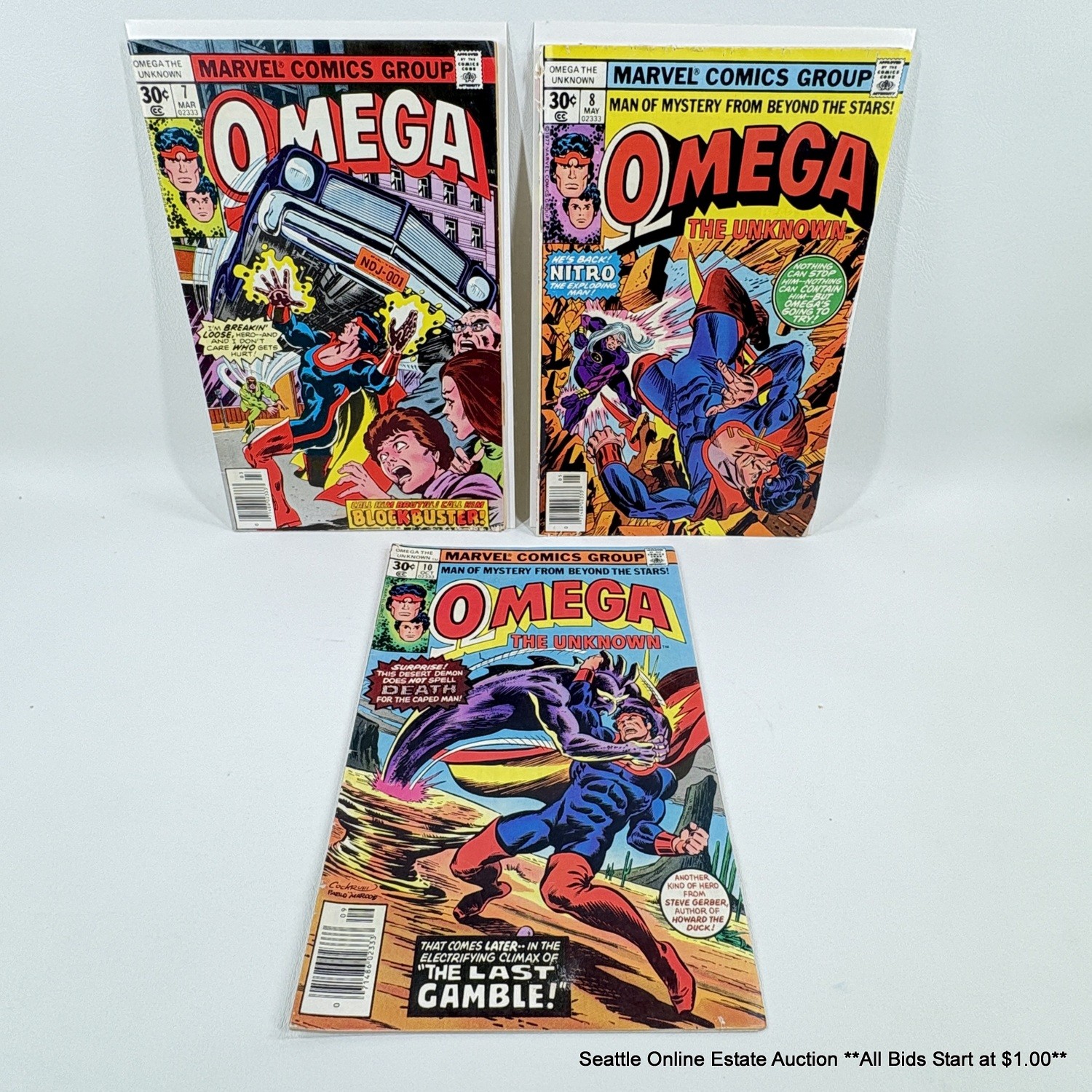 3 Marvel Omega The Unknown Comic Book No. 7, 8, 10 With 30 Cent Price Cover