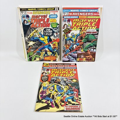 3 Marvel The Avengers Marvel Triple Action Comic Book No. 26, 27, 29 With 25 Cent Price Cover