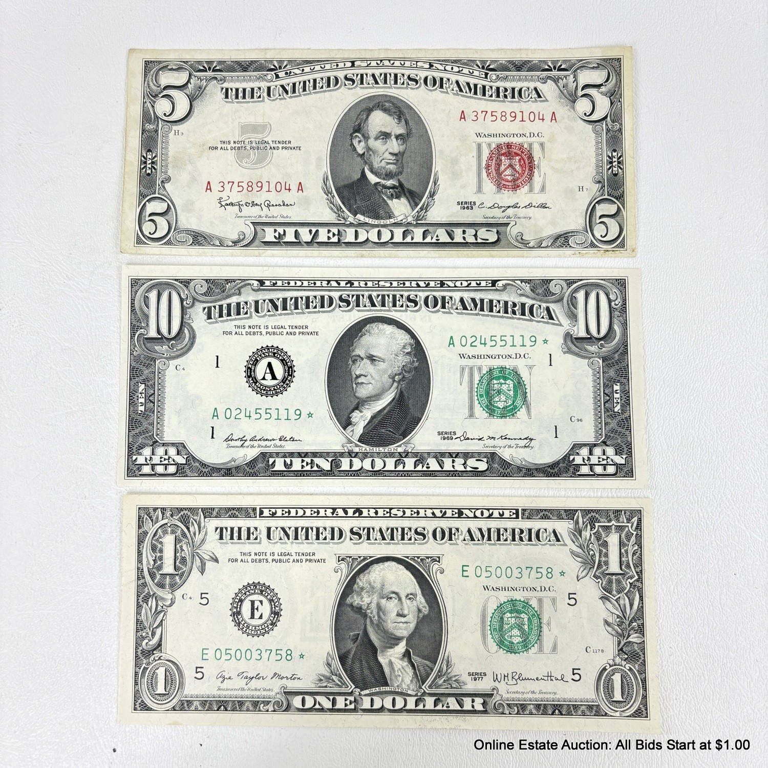 3 Ungraded U.S. Red Seal and Star Bank Notes