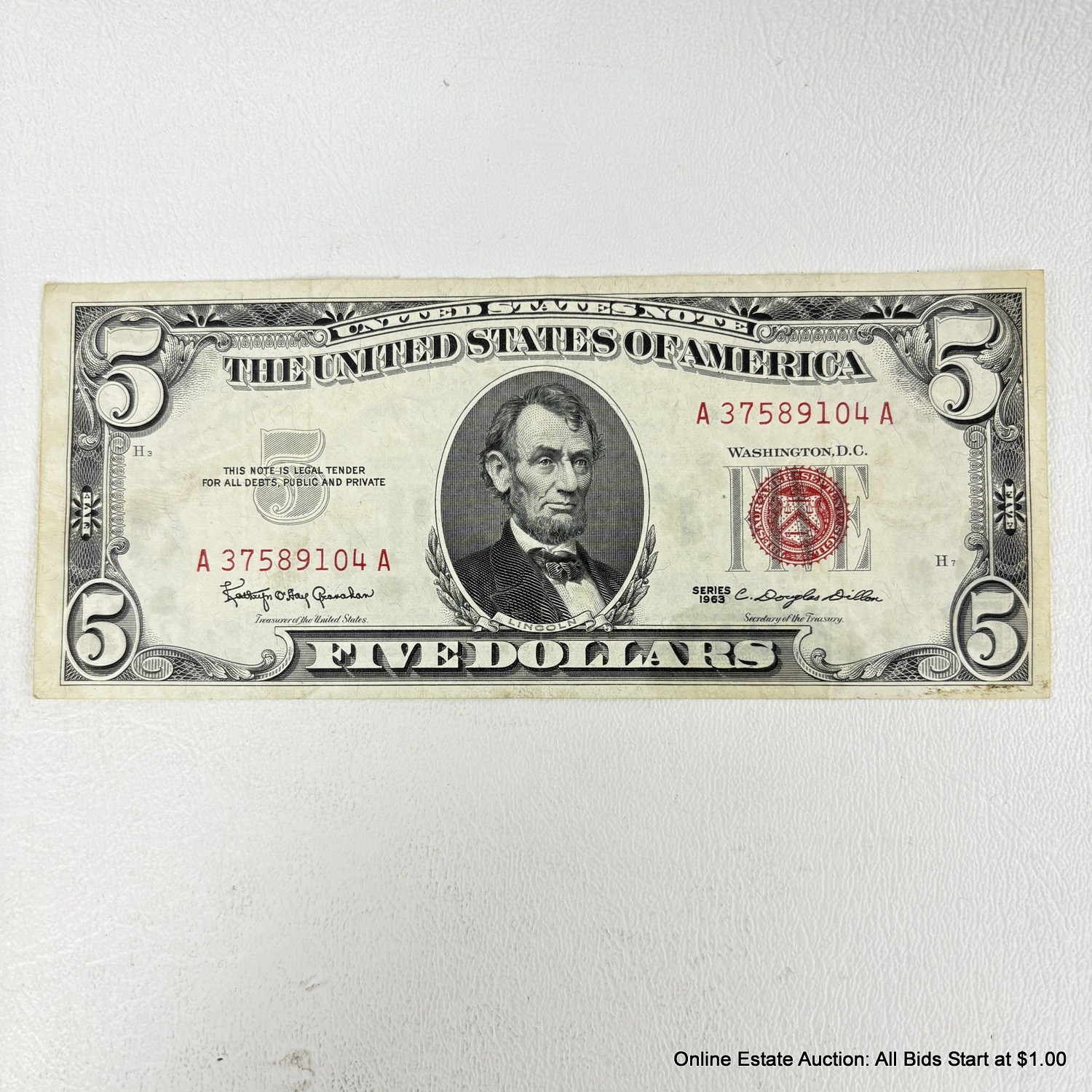 Series 1963 $5 Red Seal Bank Note