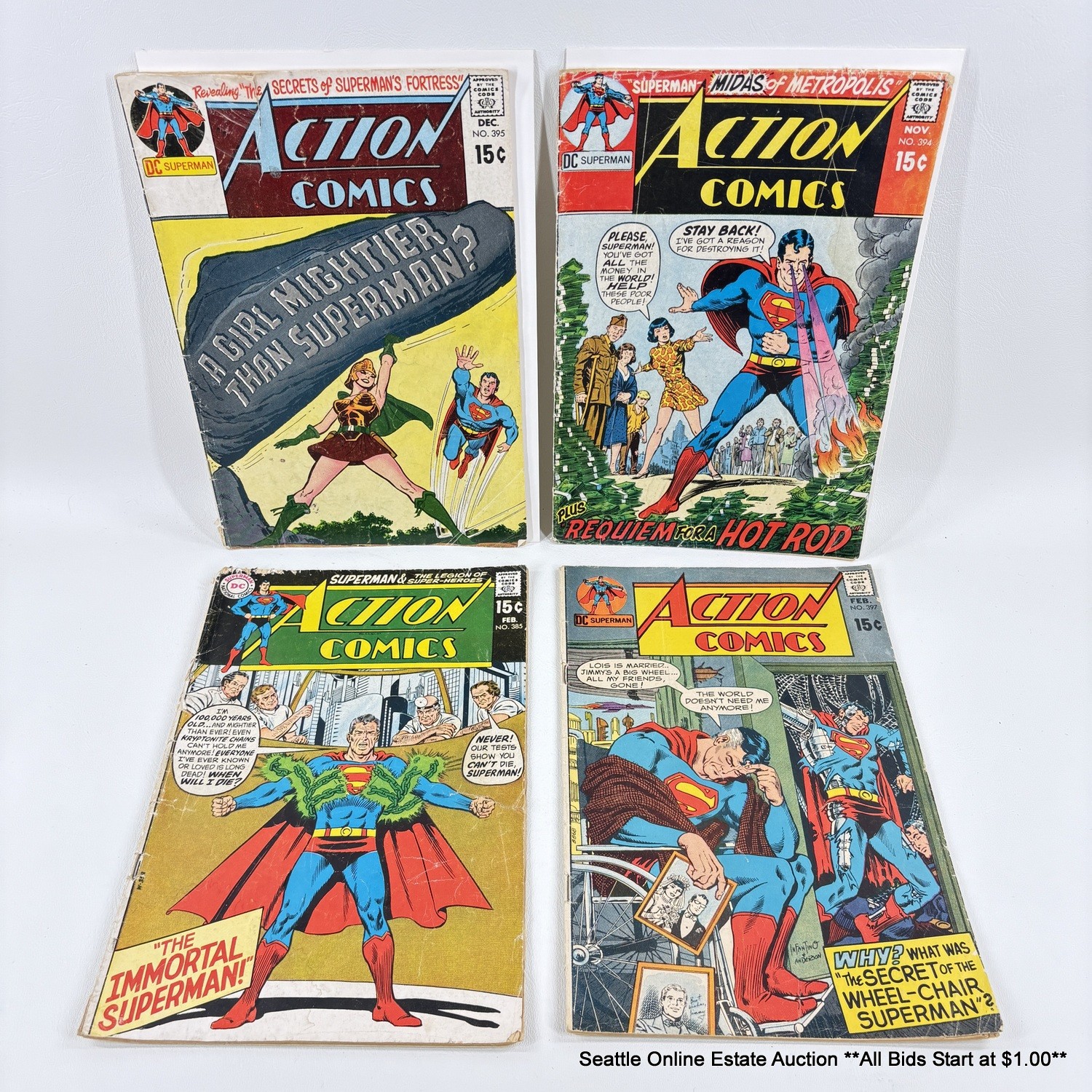 4 DC Action Comics Comic Book No. 385, 394, 395, 397 With 15 Cent Price Cover