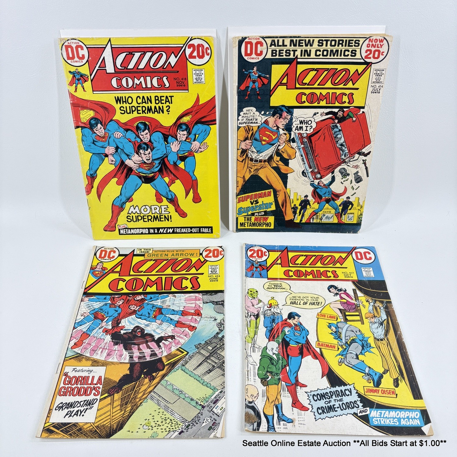 4 DC Action Comics Comic Book No. 414, 417, 418, 424 With 20 Cent Price Cover