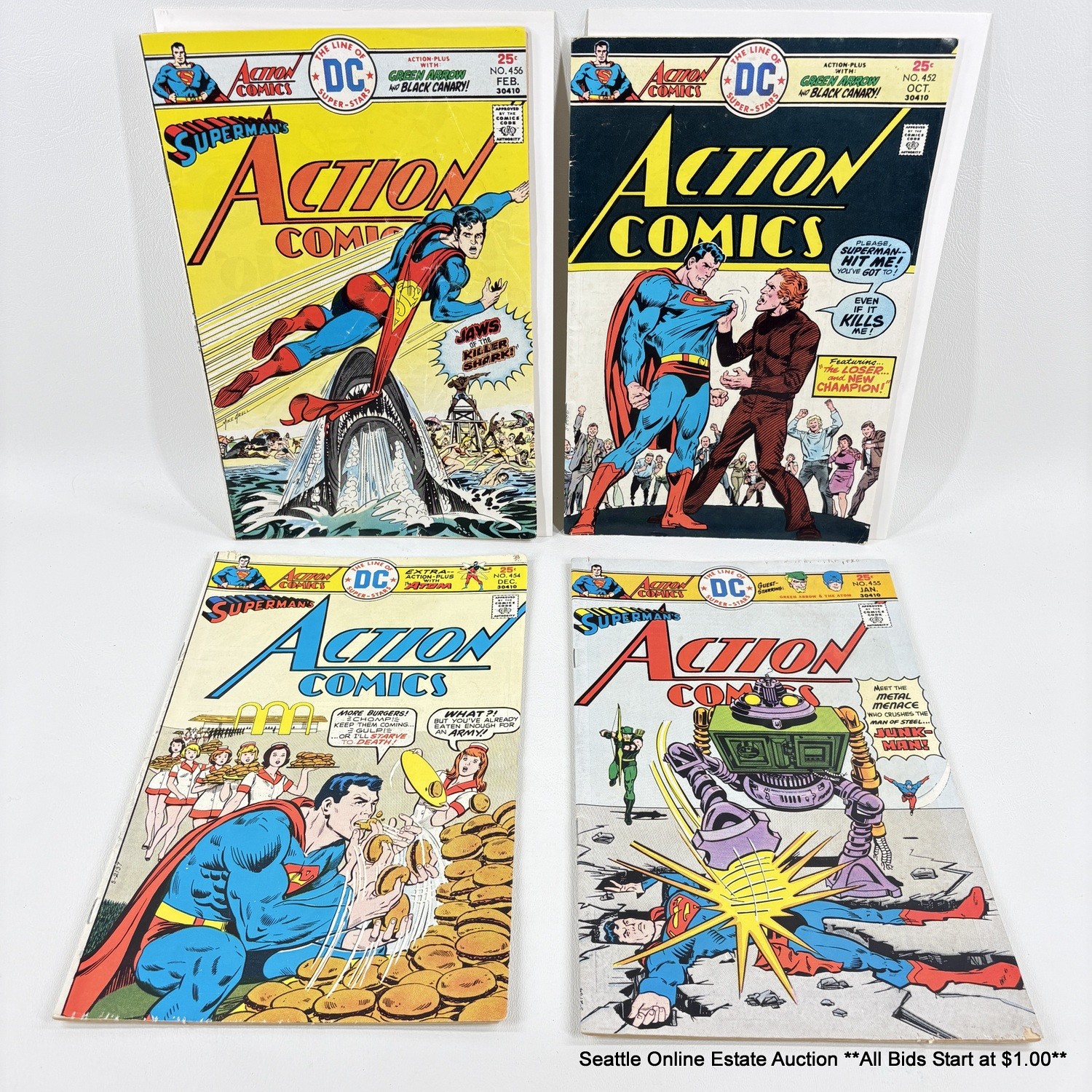 4 DC Action Comics Comic Book No. 452, 454, 454, 456 With 25 Cent Price Cover