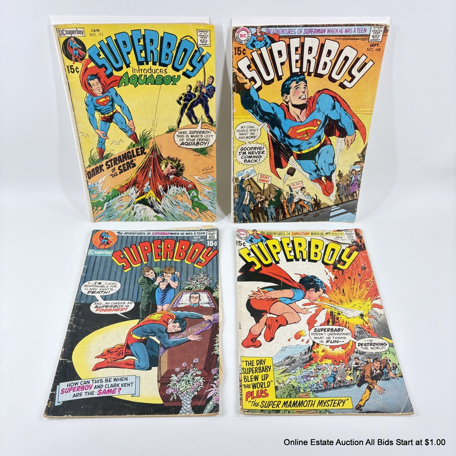 4 DC Superboy Comic Books No. 169, 167, 171, 168 15 cent cover price