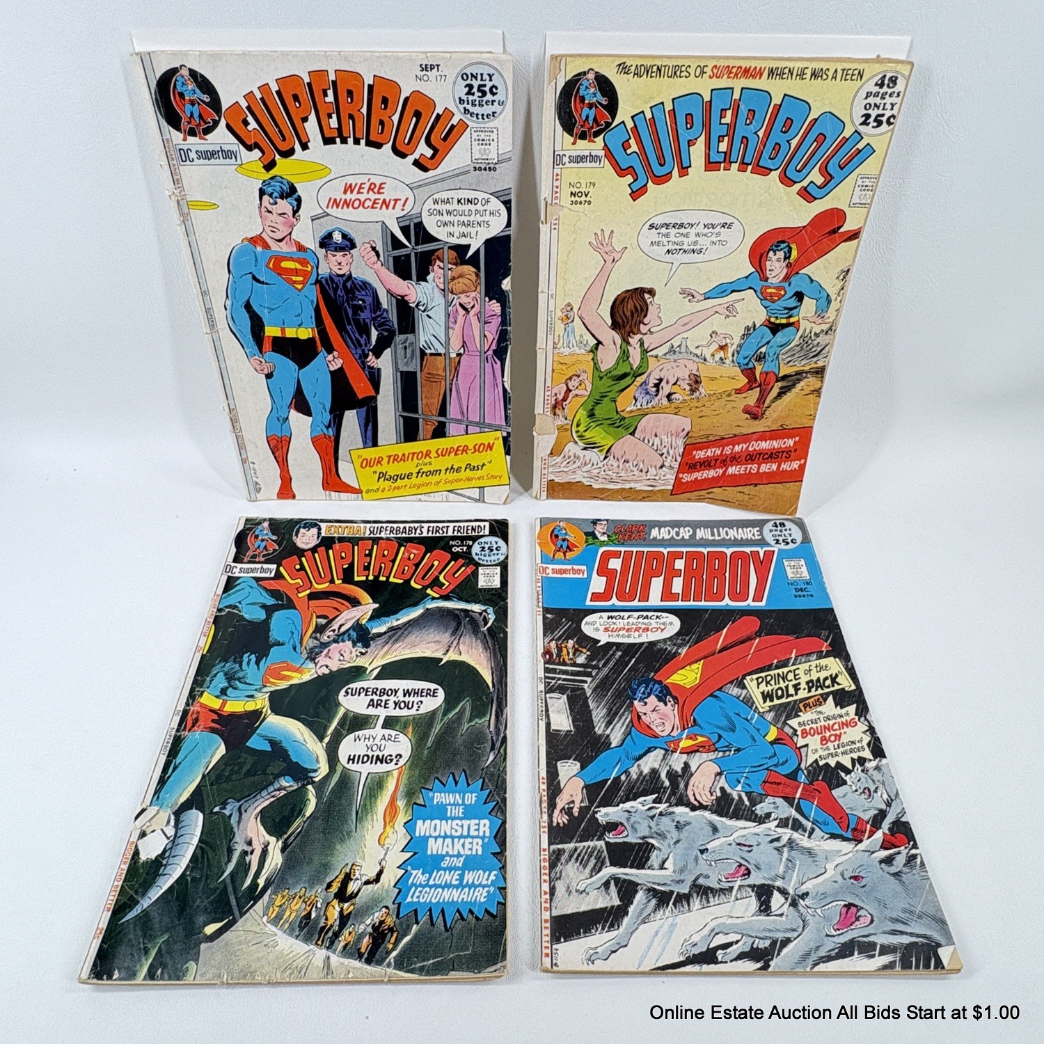 4 DC Superboy Comic Books No.178, 180, 177, 179 25 Cent Cover Price