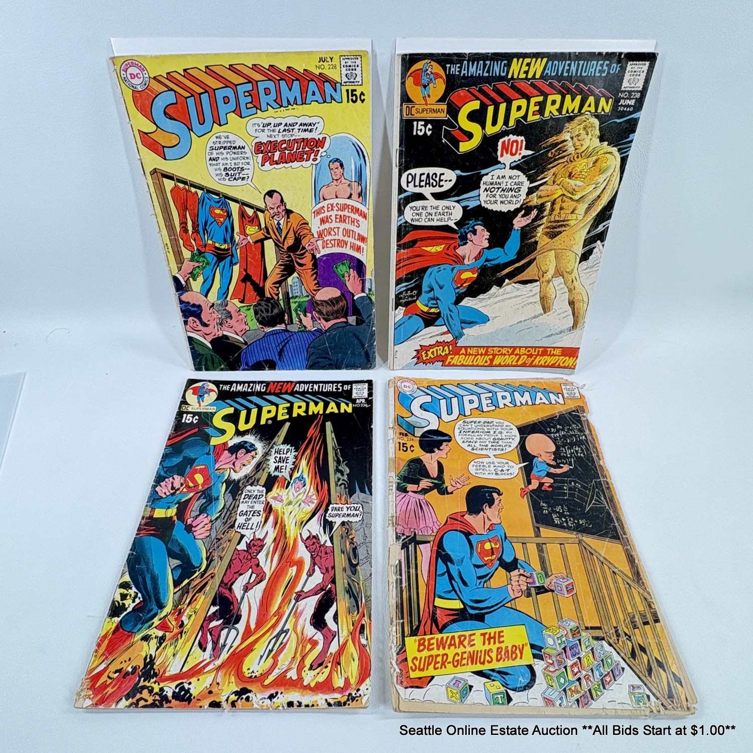 4 DC Superman No. 228, 238, 224, 236 15 Cent Cover Comic Books