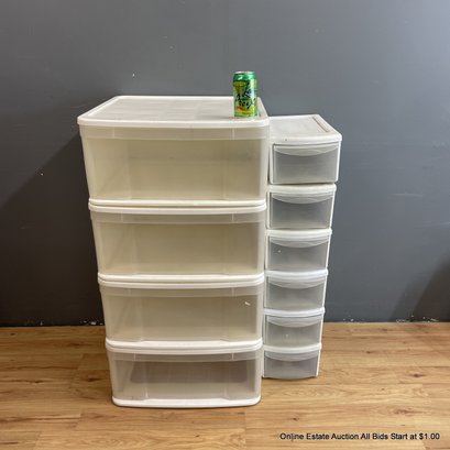 4 Large And 6 Small Stacking Plastic Storage Drawers (LOCAL PICK UP ONLY)