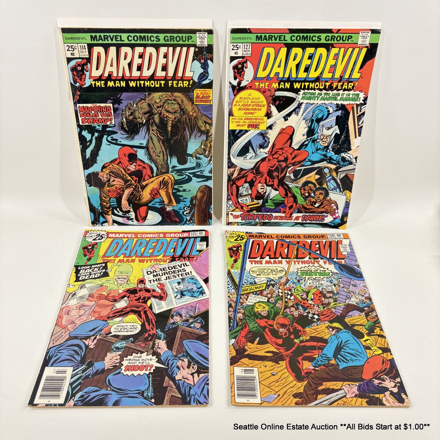 4 Marvel Daredevil The Man Without Fear Comic Book No. 114, 127, 135, 136 With 25 Cent Price Cover