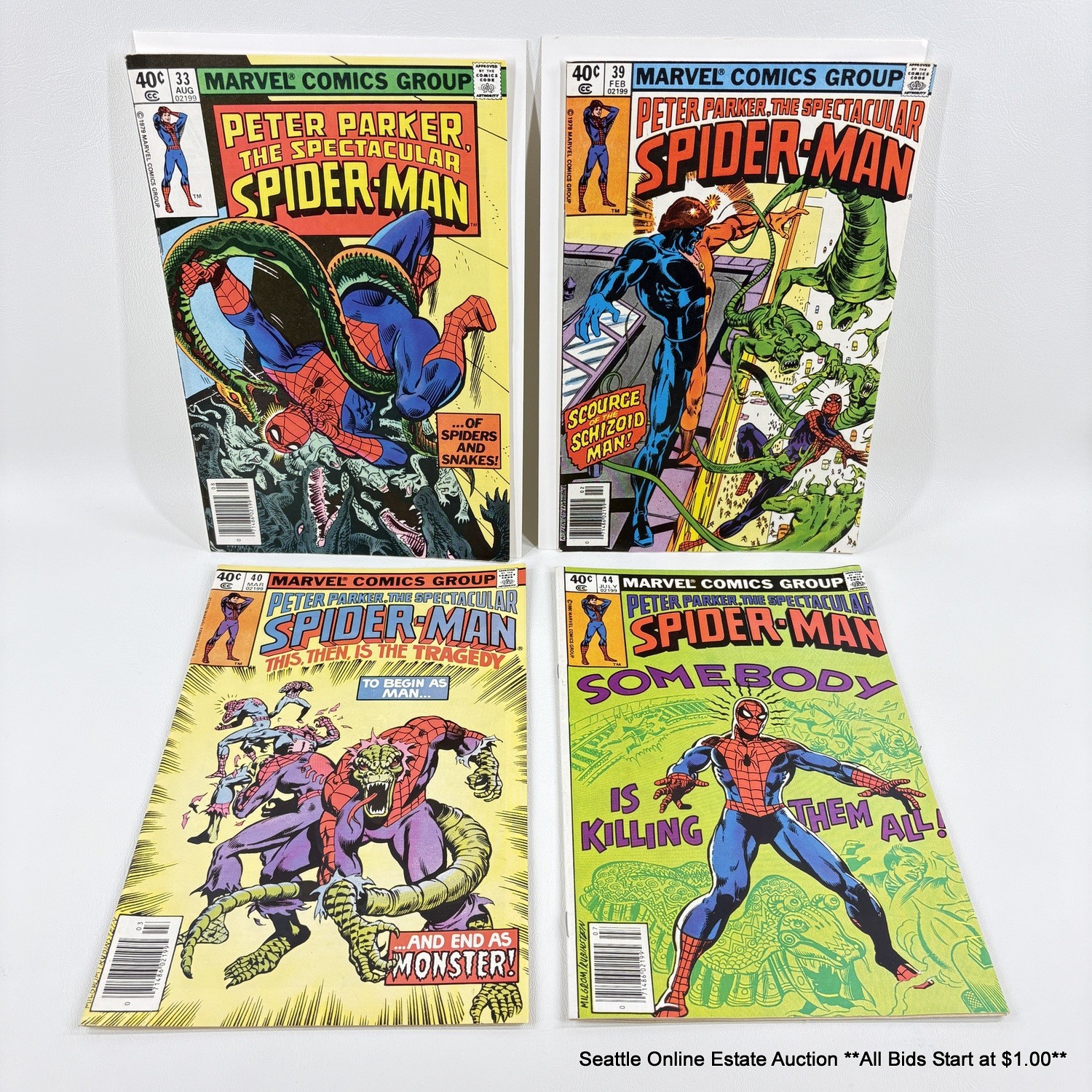 4 Marvel Peter Parker, The Spectacular Spider-Man Comic Book No. 33, 39, 40, 44 With 40 Cent Price Cover