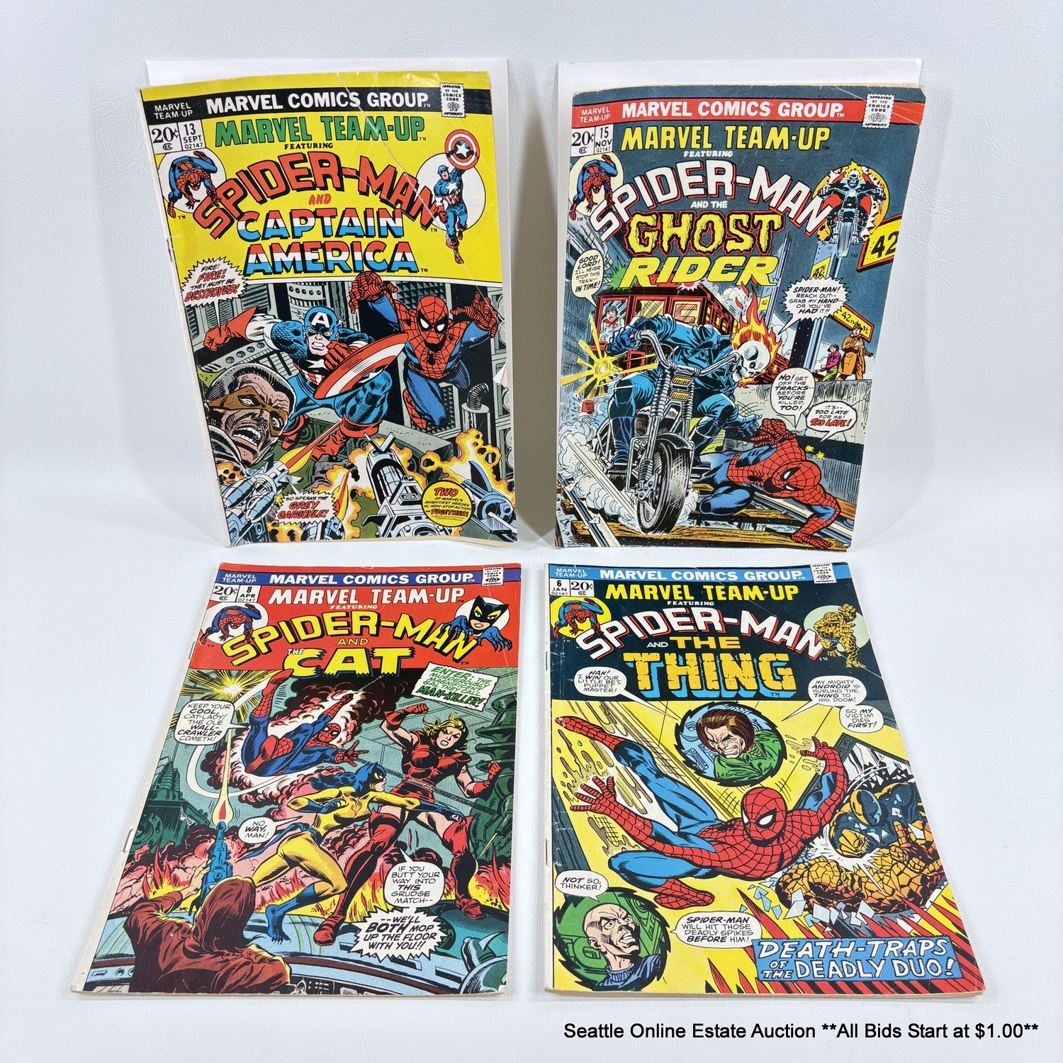 4 Marvel Team-Up Feat. Spider-Man Comic Book No. 6, 8, 13, 15 With 20 Cent Price Cover