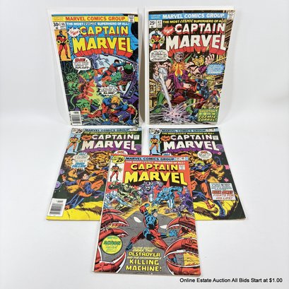 5 Marvel Captain Marvel Comic Book No. 42, 44, 45, 46 25 Cent Cover Price