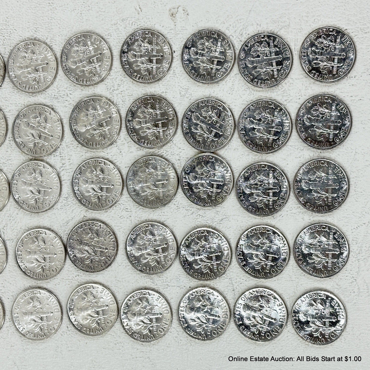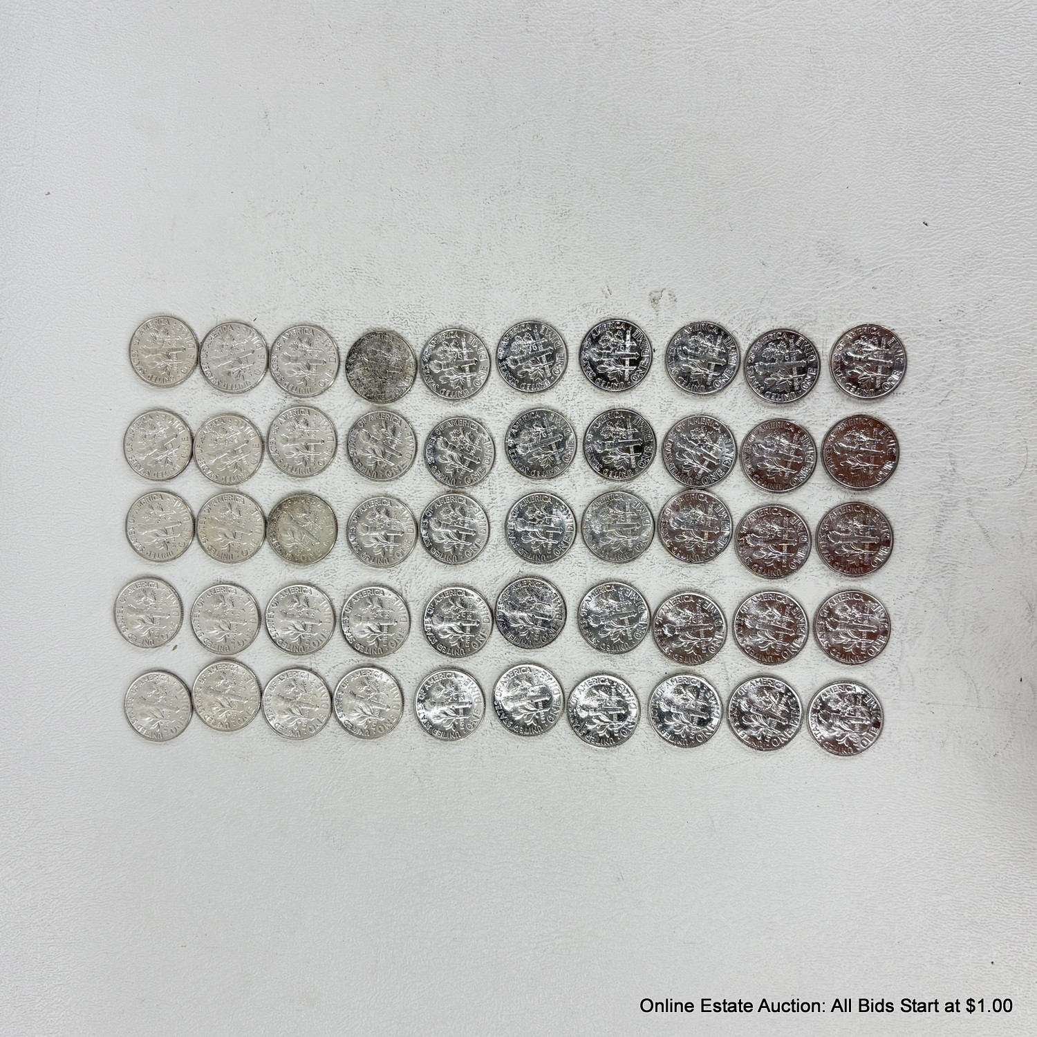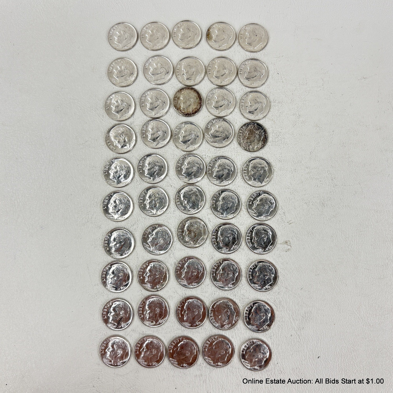 50 U.S. Dimes 1963 Ungraded and Circulated