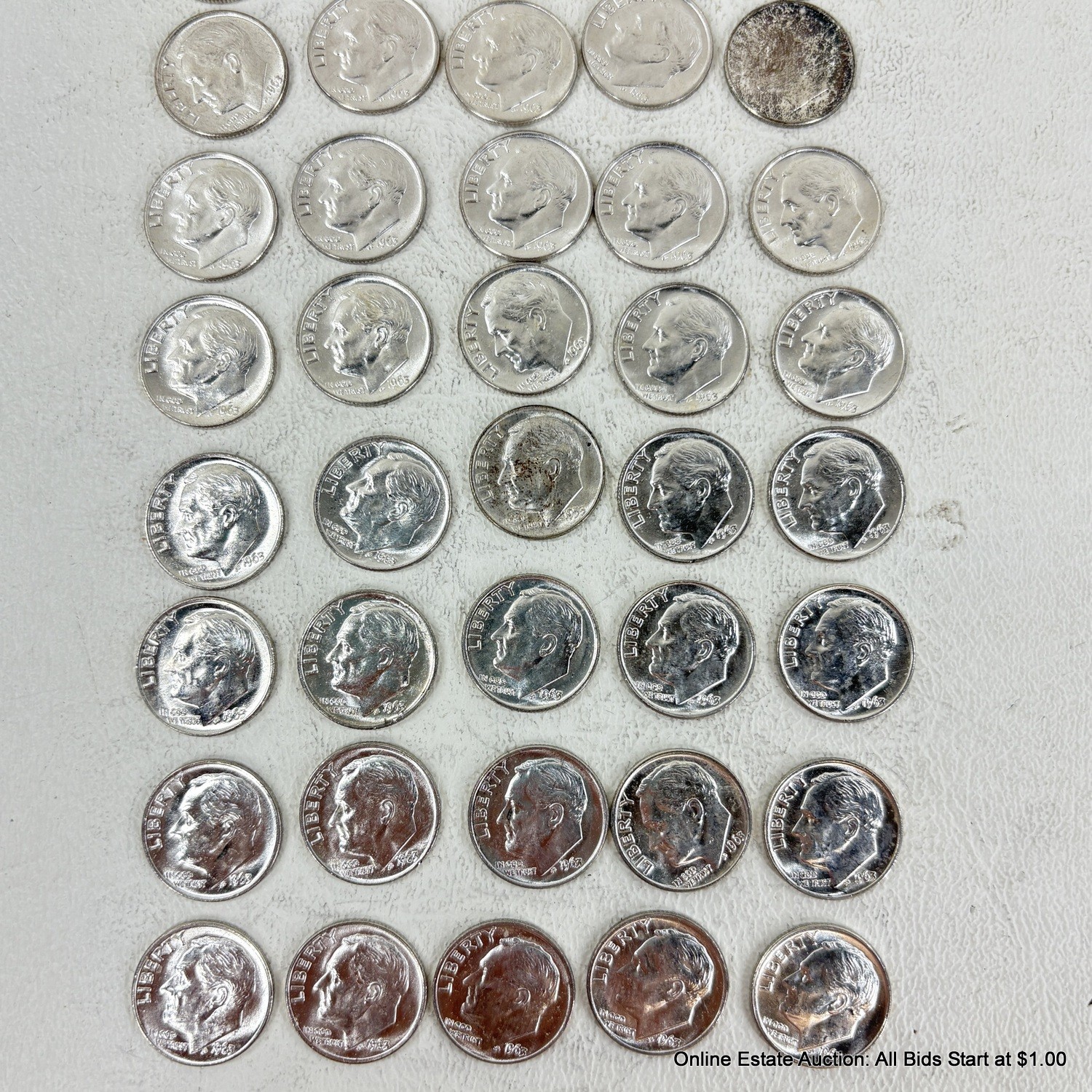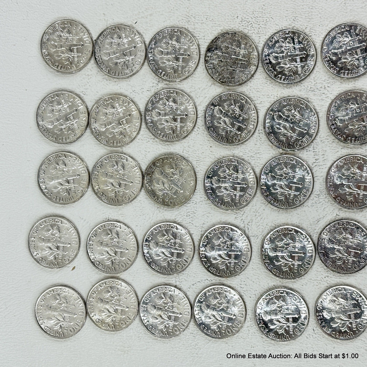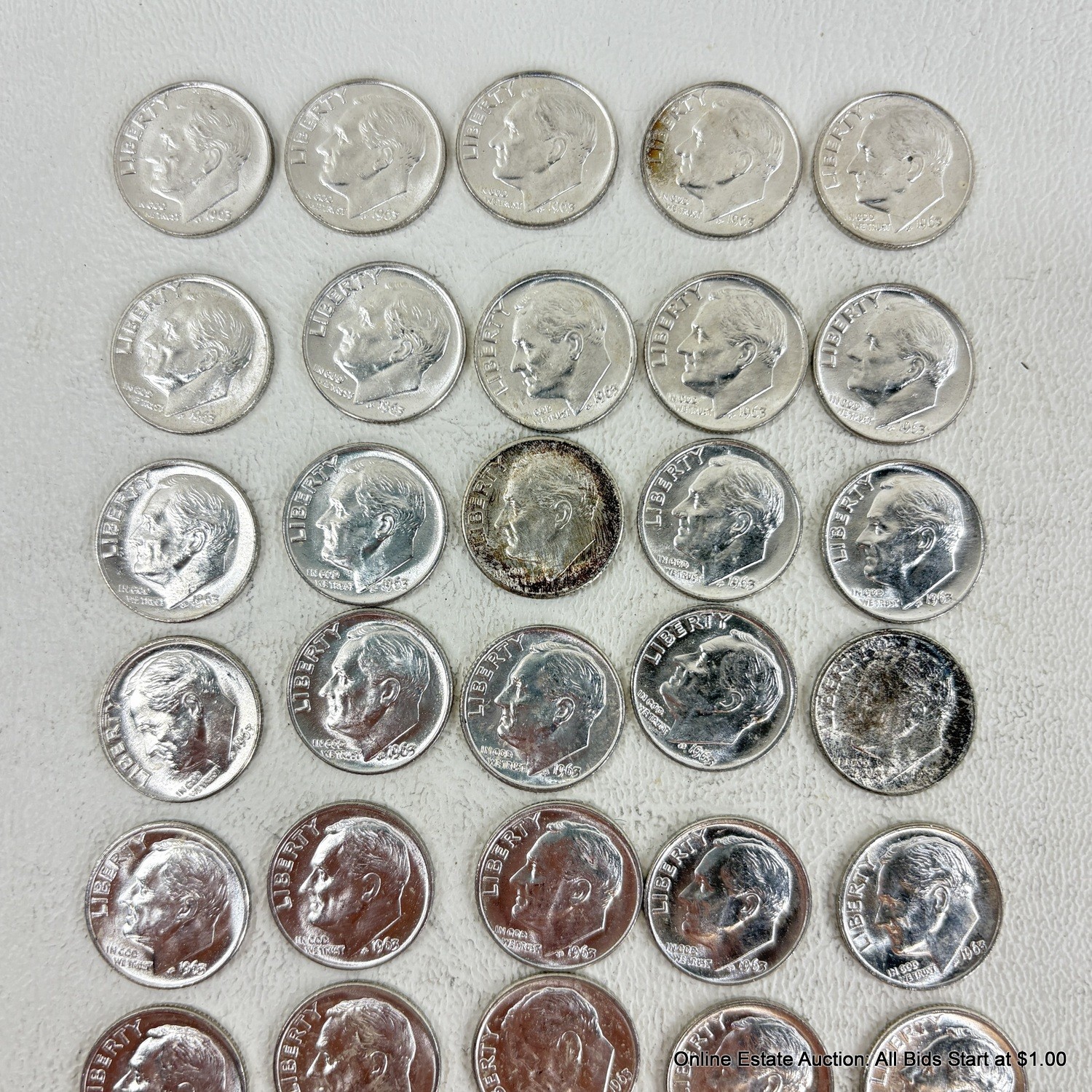 50 U.S. Dimes 1963 Ungraded and Circulated