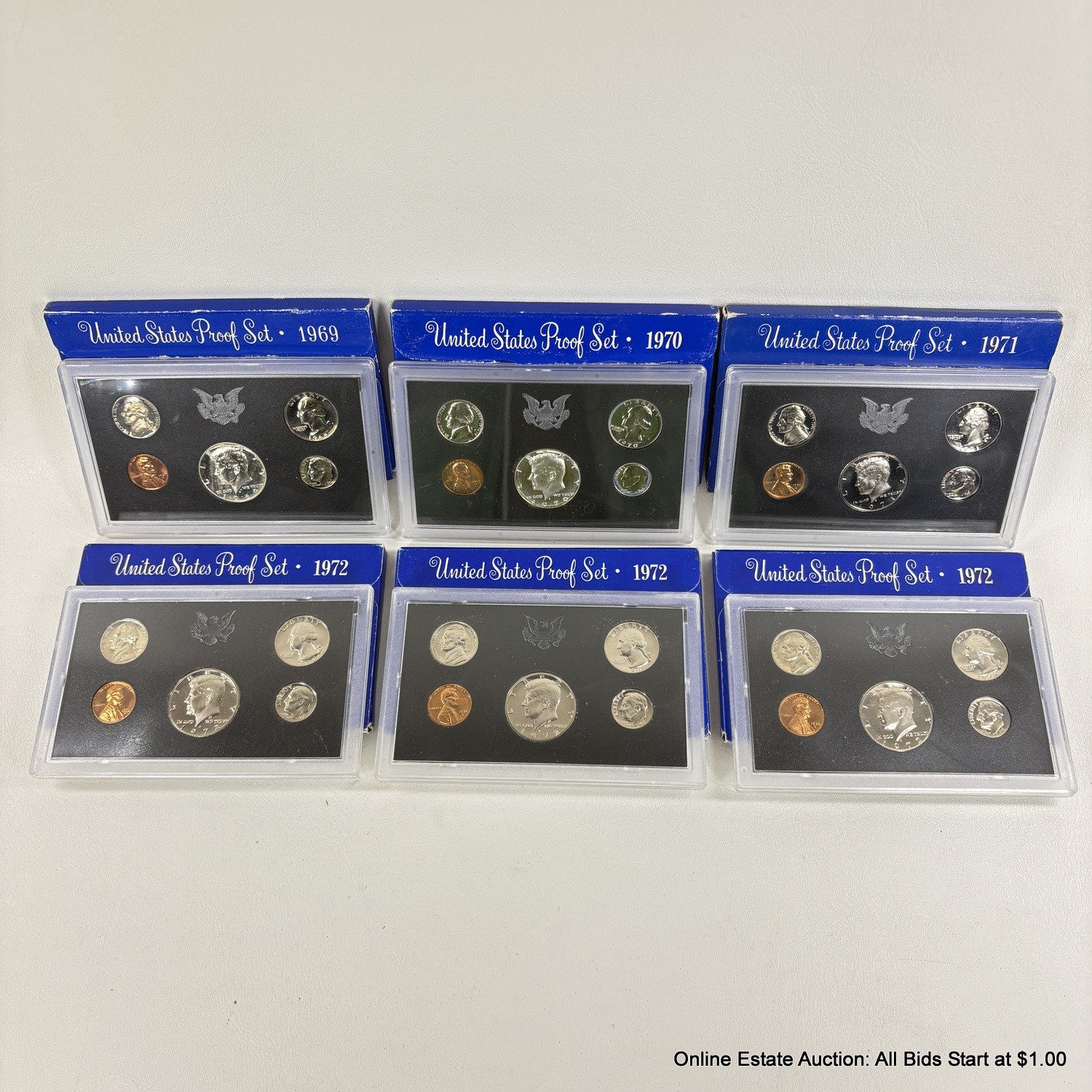 6 1969-1972 U.S. 5 Coin S Proof Sets In Sealed Capsules