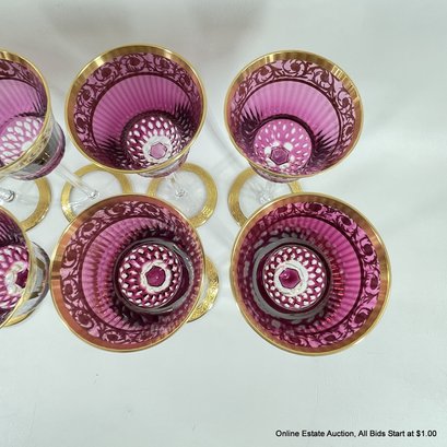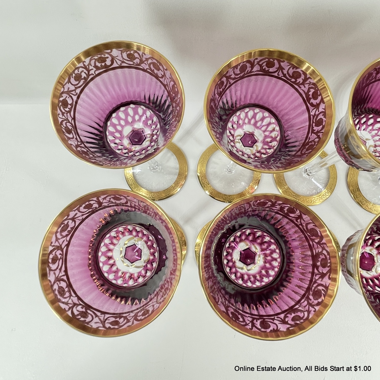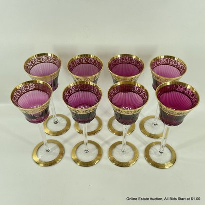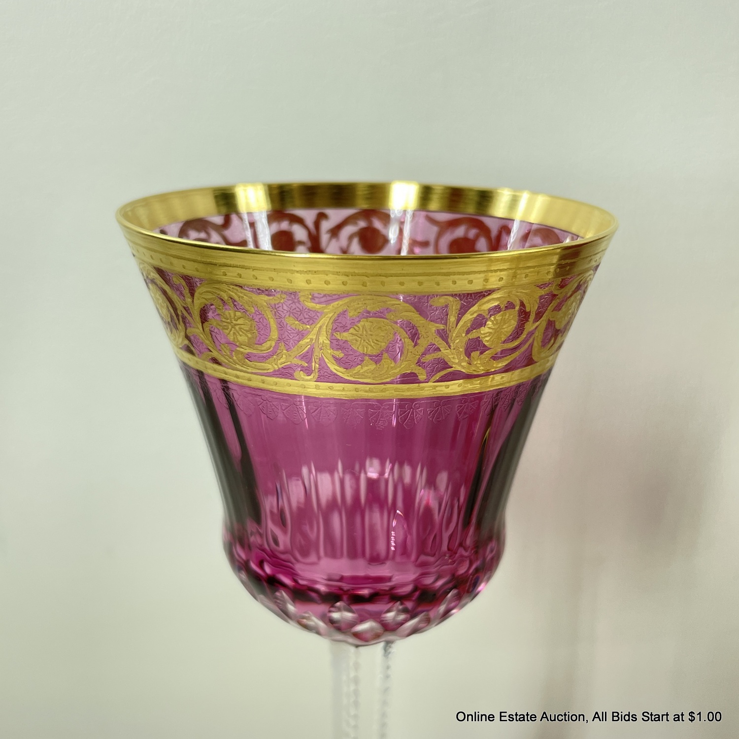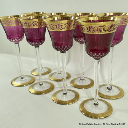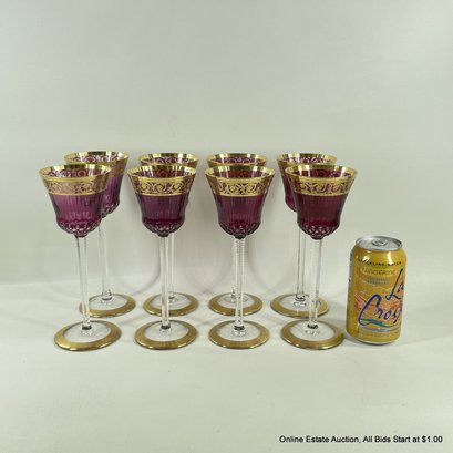 8 Saint Louis Thistle Amethyst Hock Wine Glasses