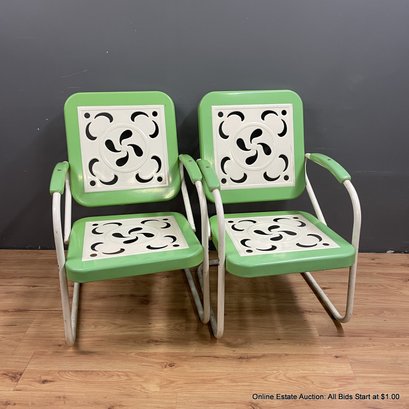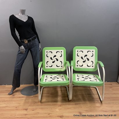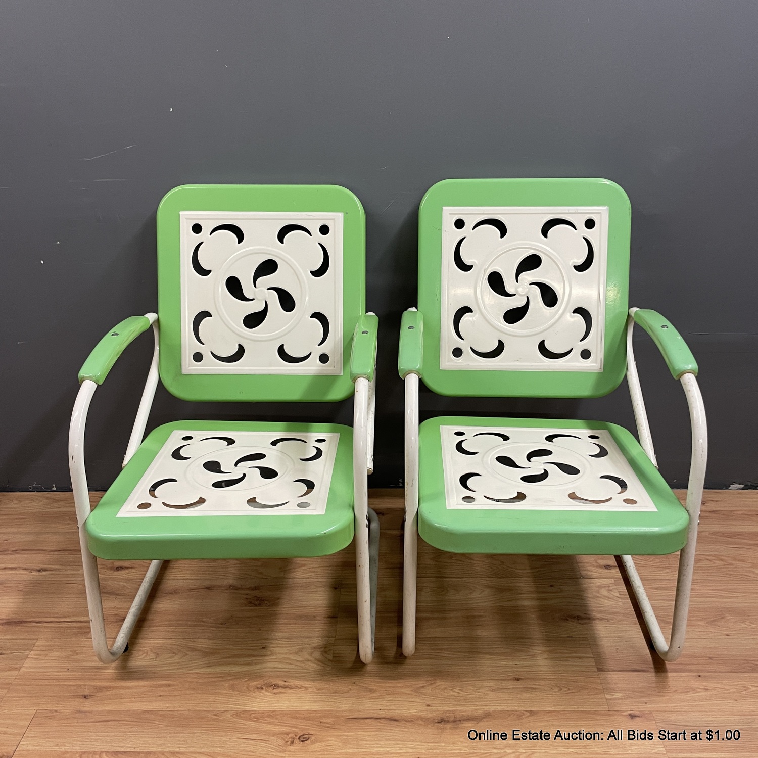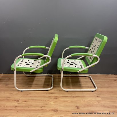 Pair Of Retro Style Metal Outdoor Chairs (LOCAL PICK UP ONLY)