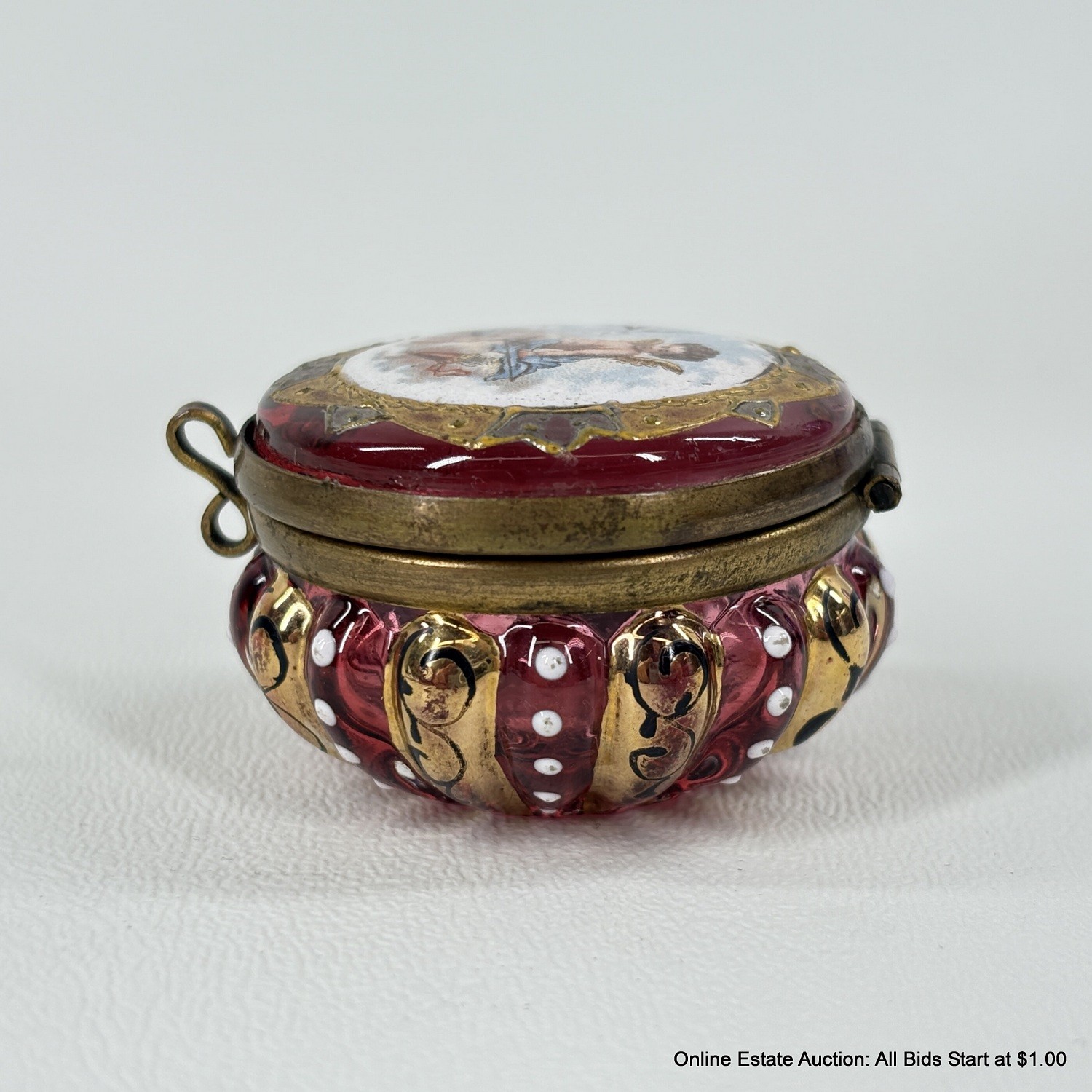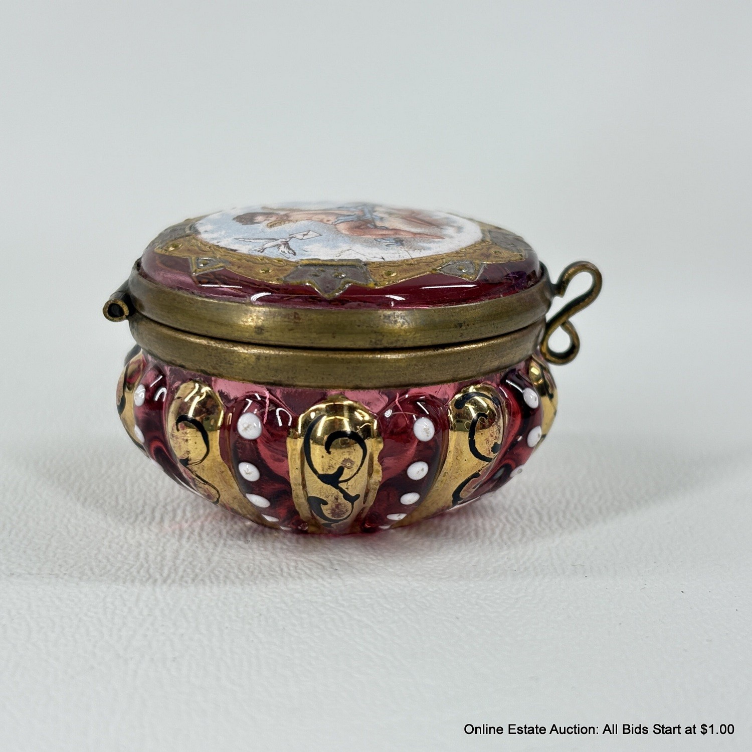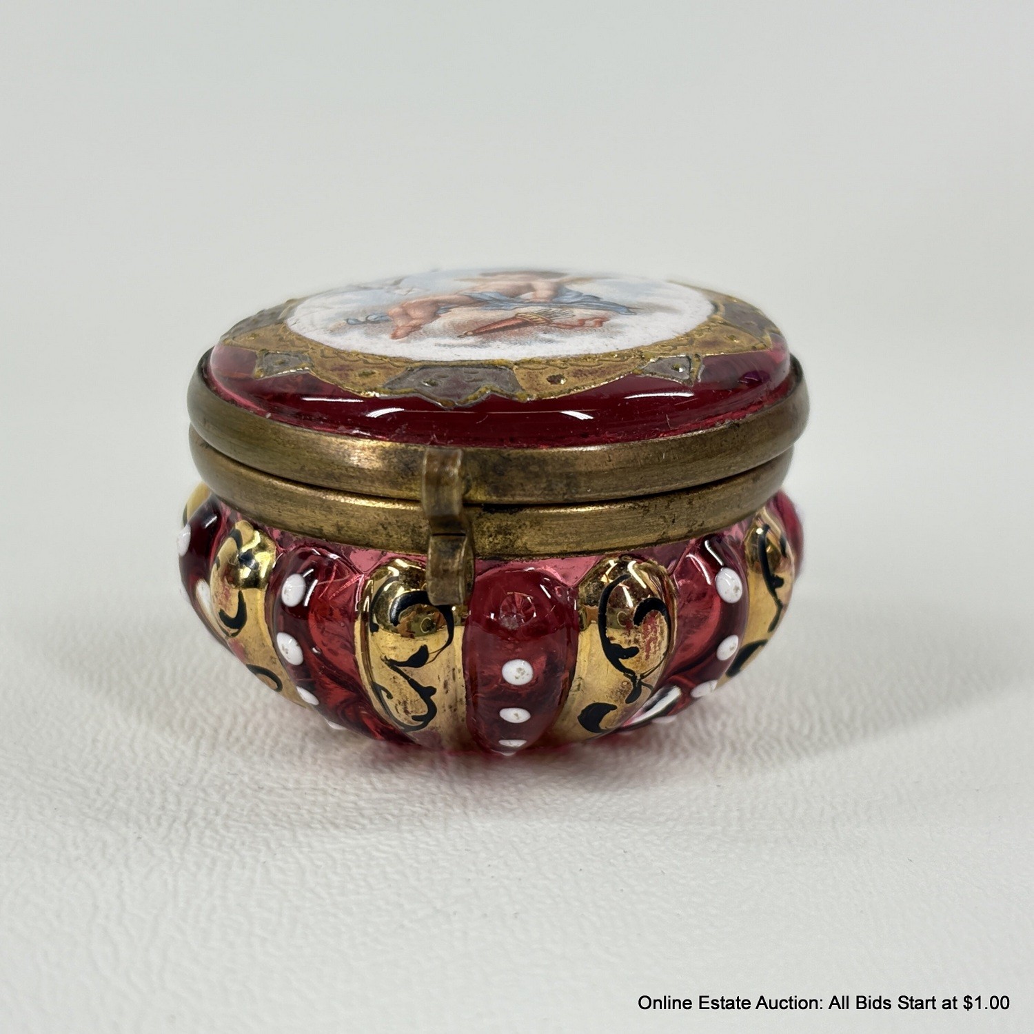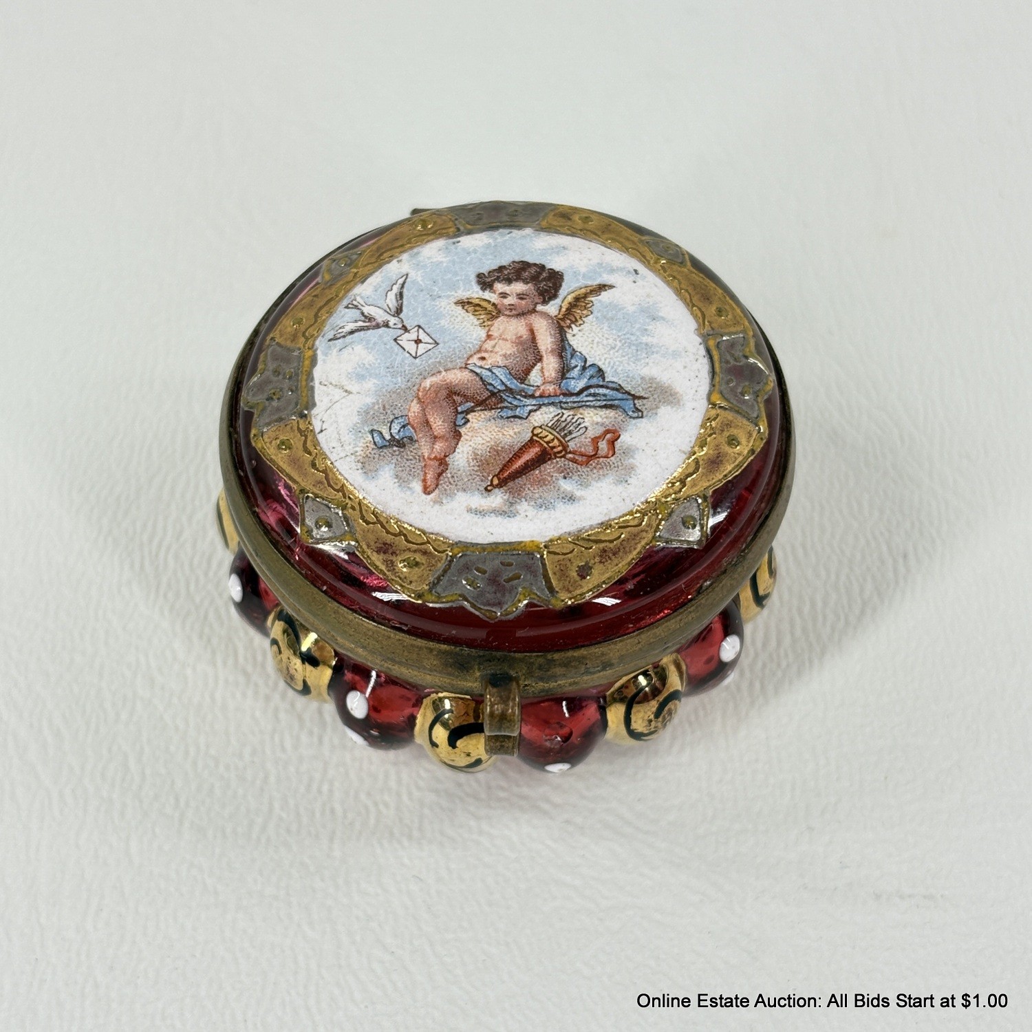 Antique Cranberry Glass Cherub Trinket Box