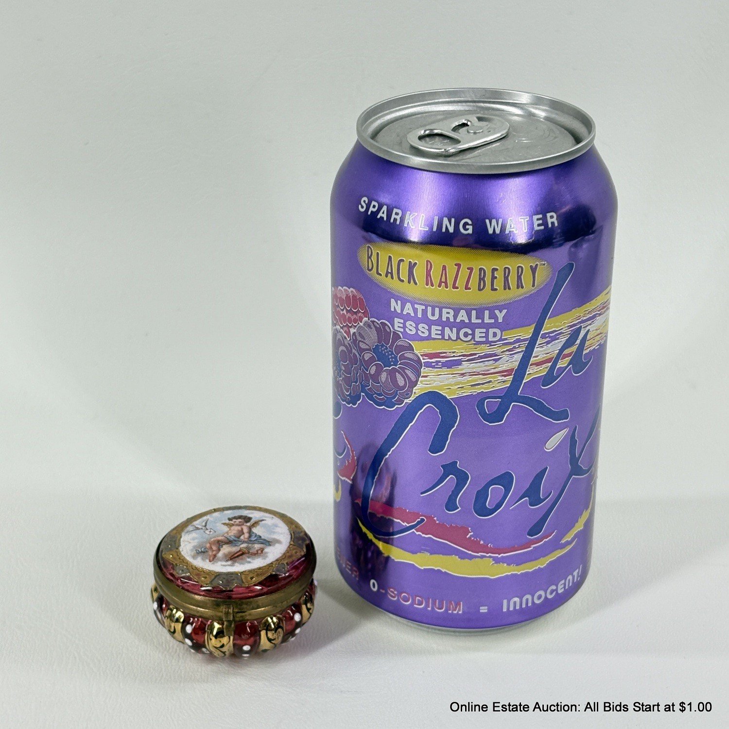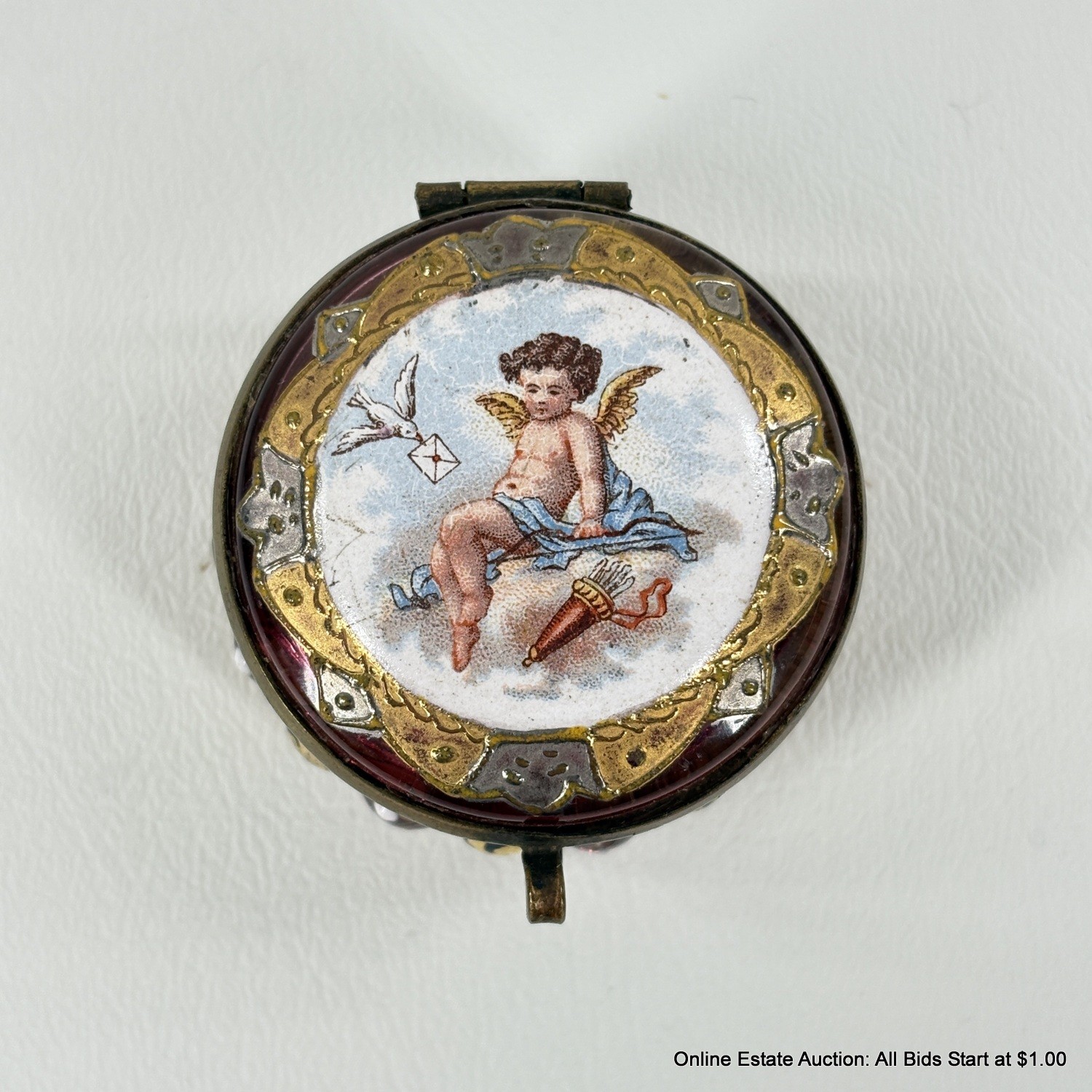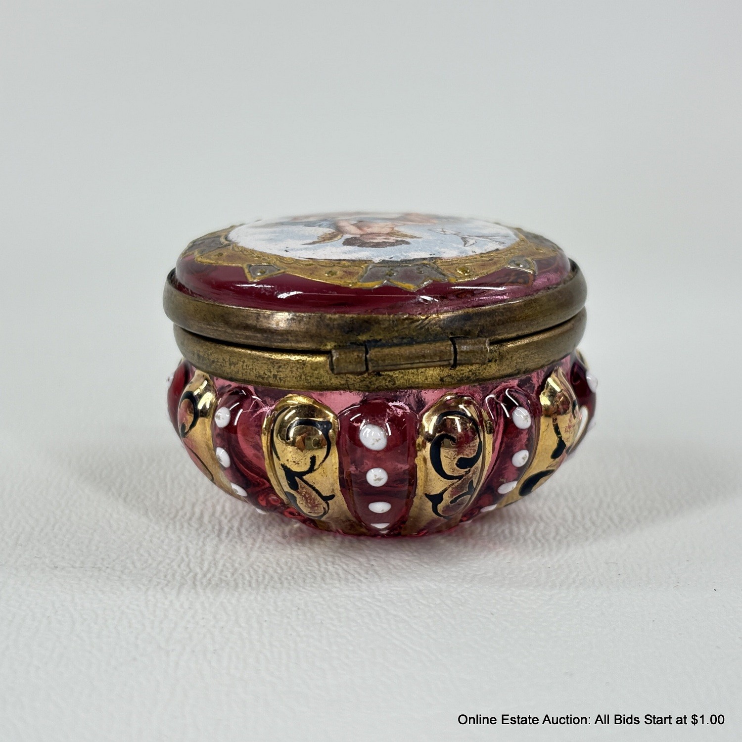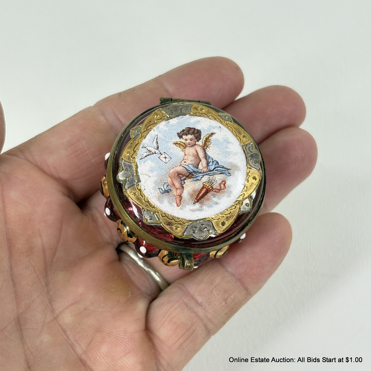 Antique Cranberry Glass Cherub Trinket Box