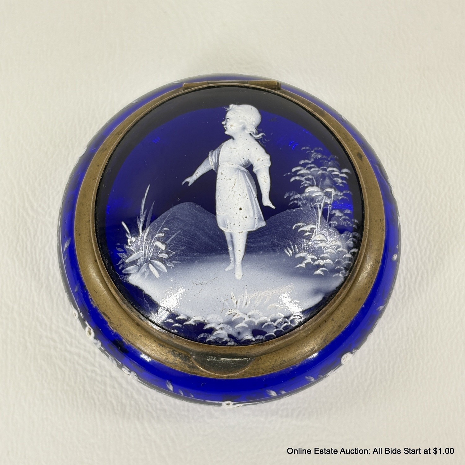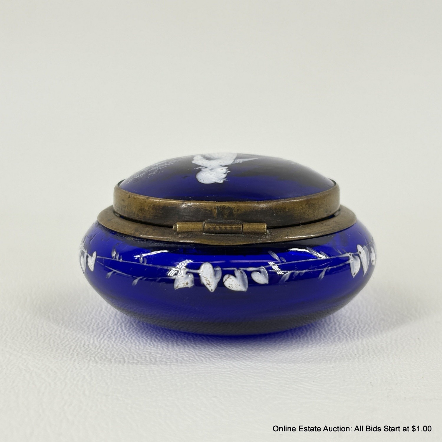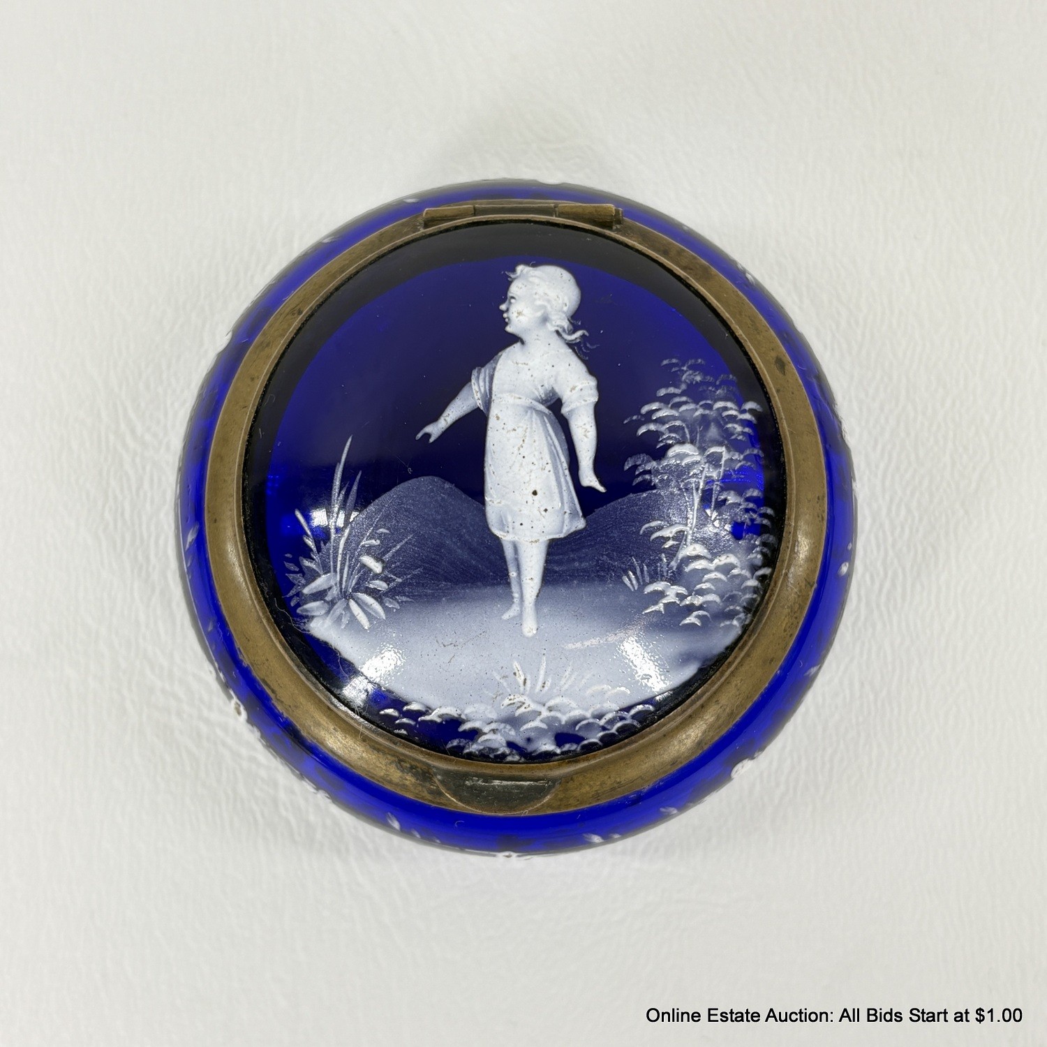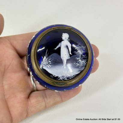 Antique Mary Gregory Cameo Glass Style Hinged Trinket Box
