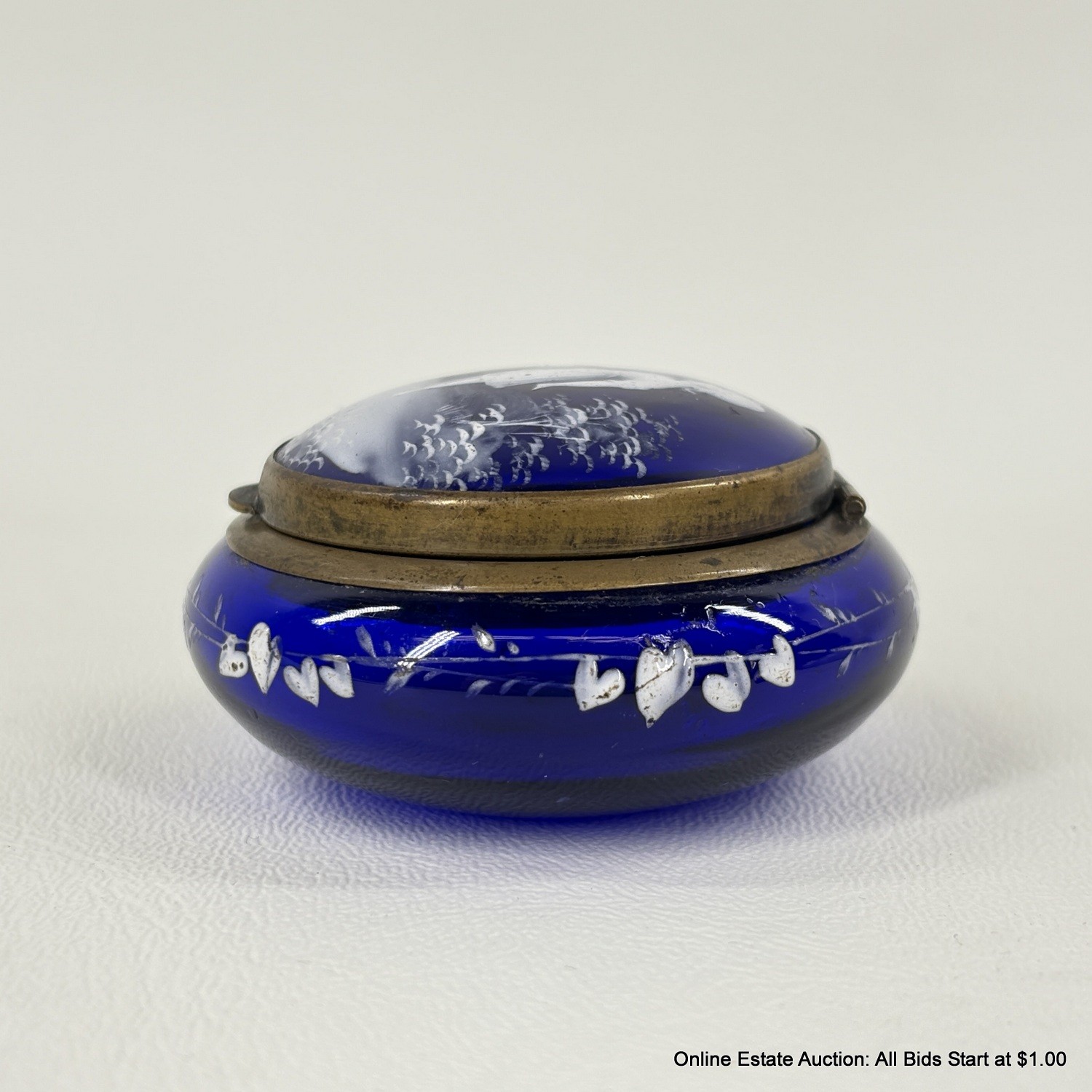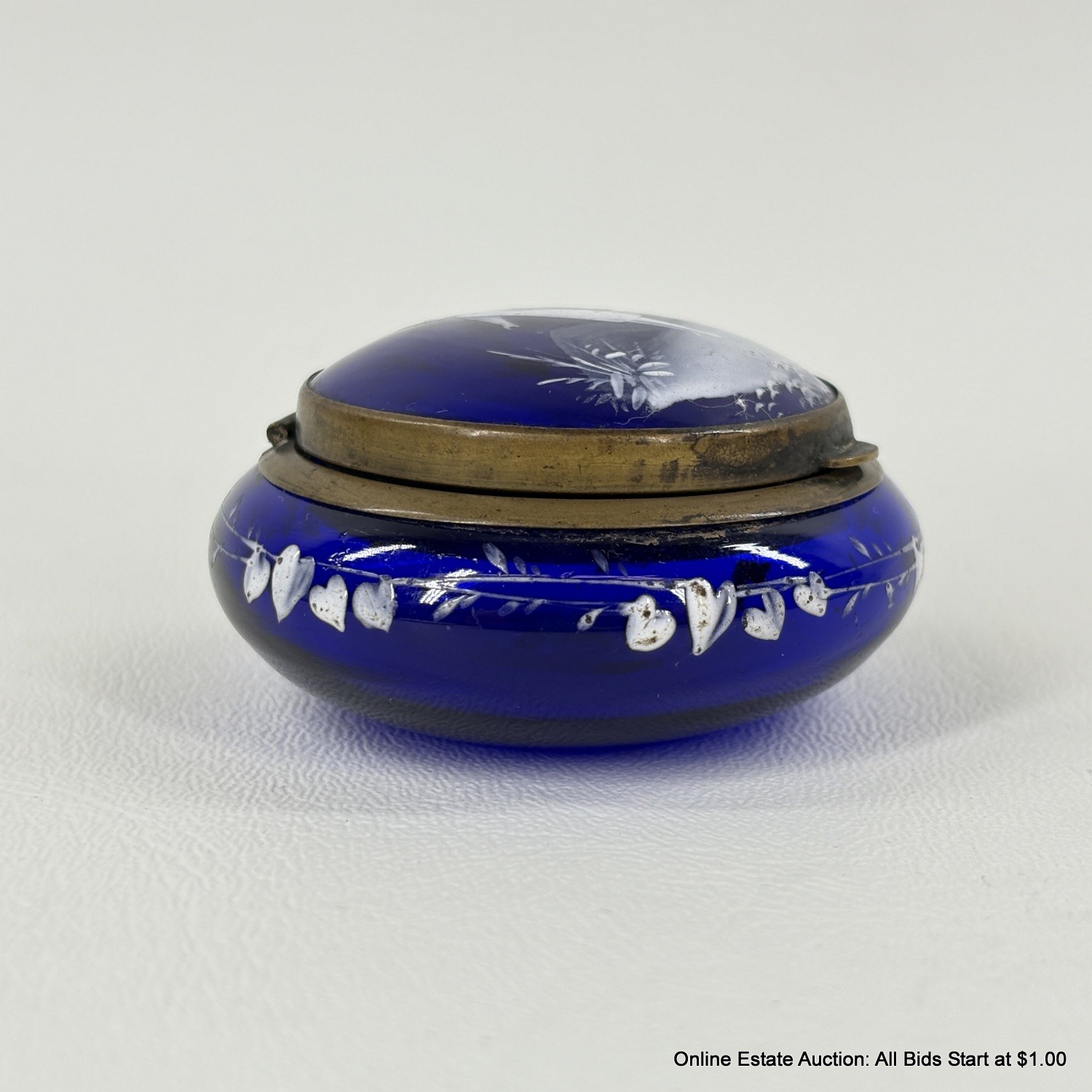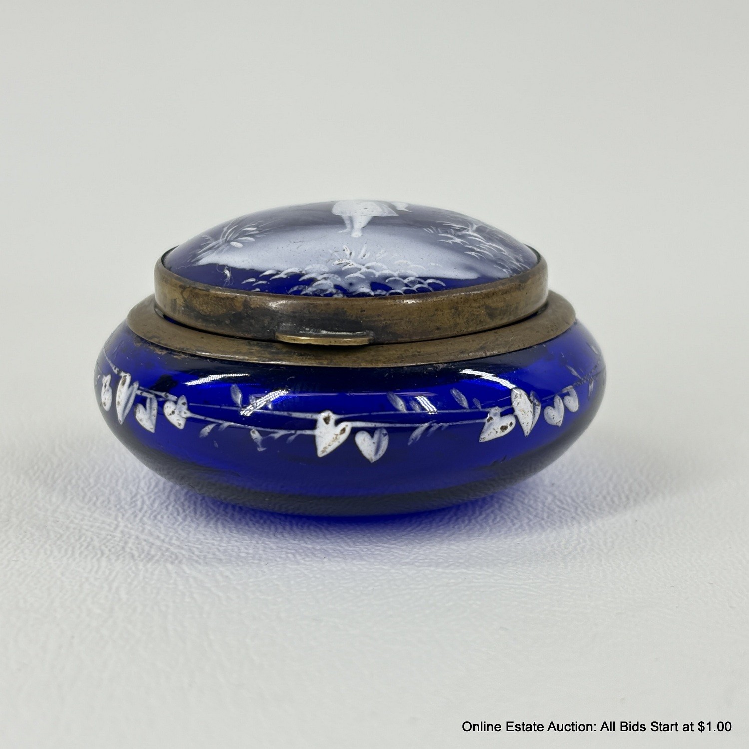 Antique Mary Gregory Cameo Glass Style Hinged Trinket Box