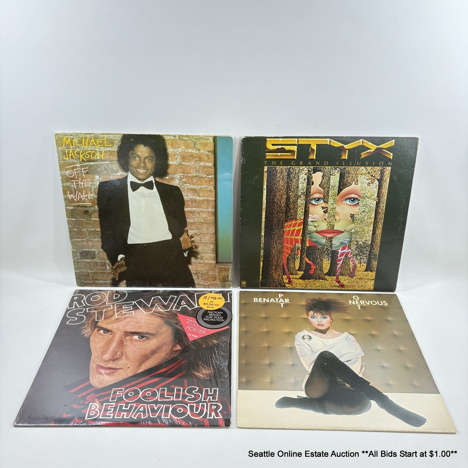 Pat Benatar, Michael Jackson, Styx, Rod Stewart Vintage Vinyl Record Albums