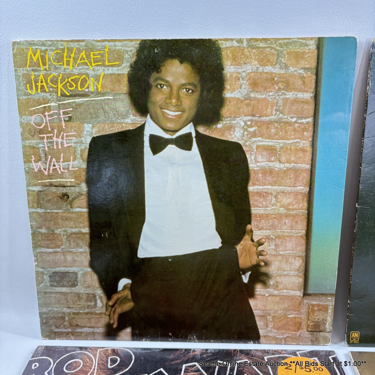 Light scratches and scuffs to Michael Jackson and Styx records, minimal scuffing to Pat Benatar vinyl. Wear to covers.