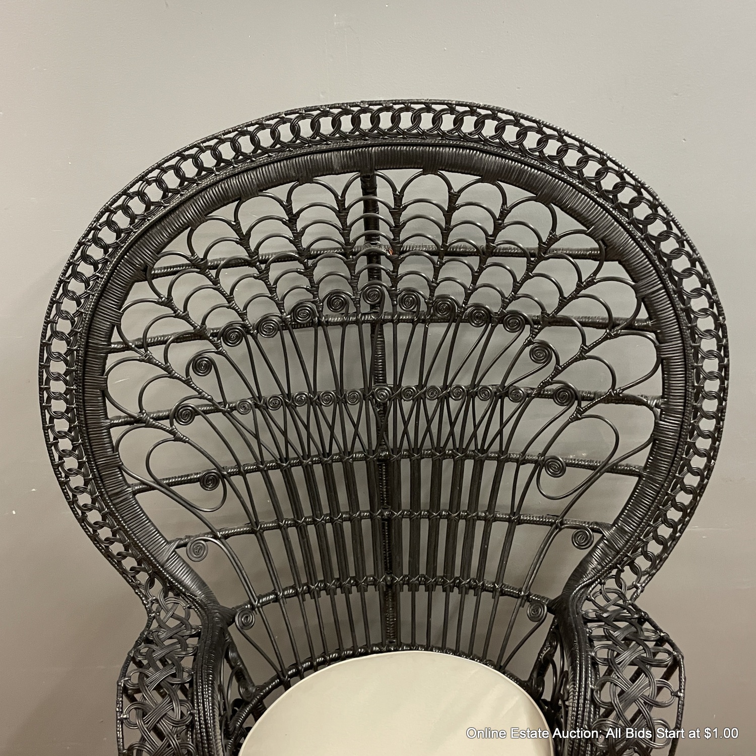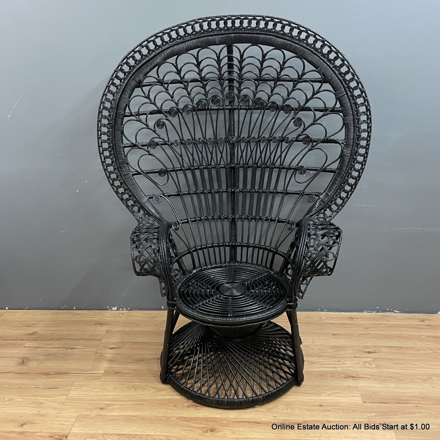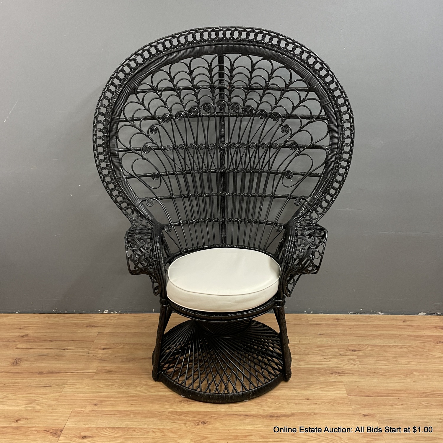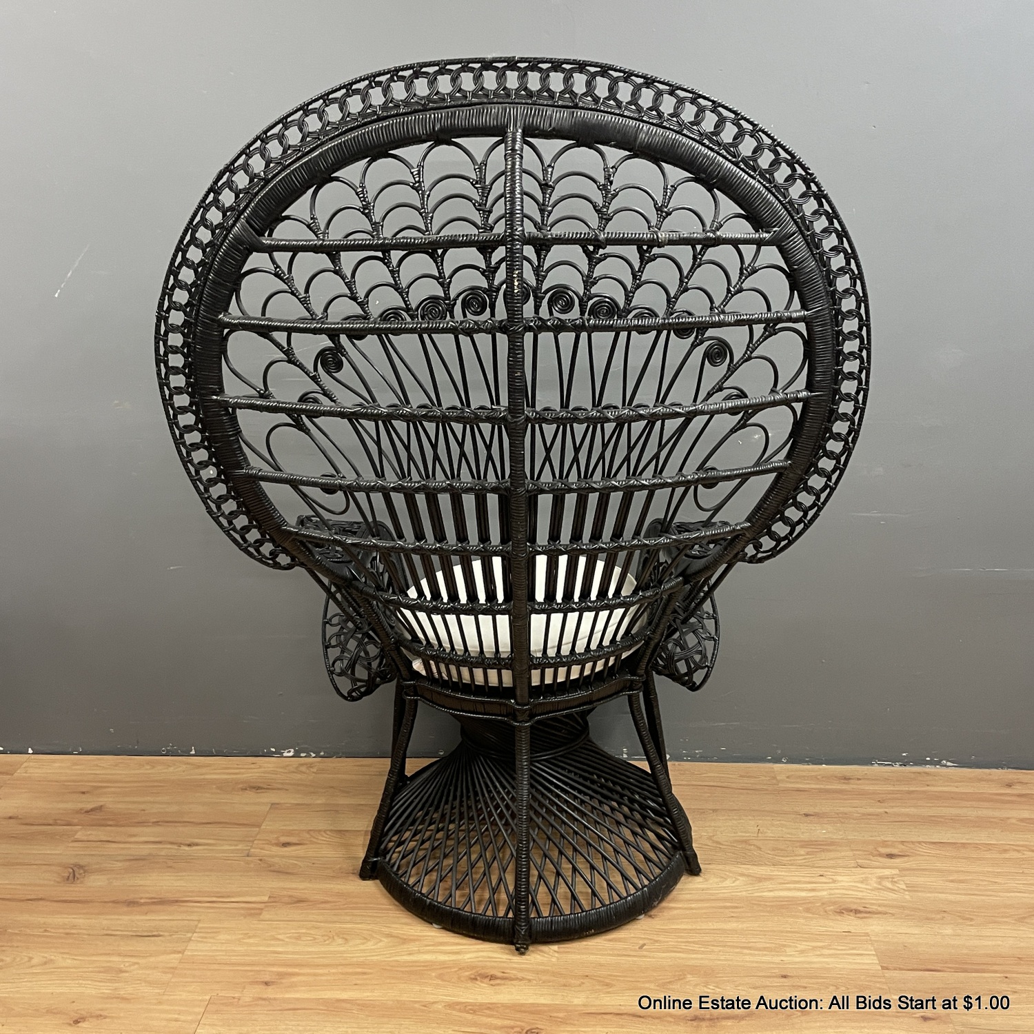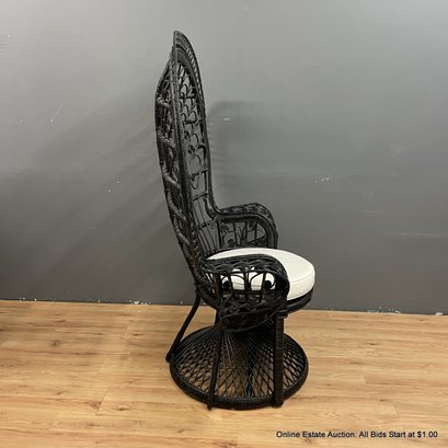 Black Rattan Peacock Chair With Bottom Cushion (LOCAL PICK UP ONLY)