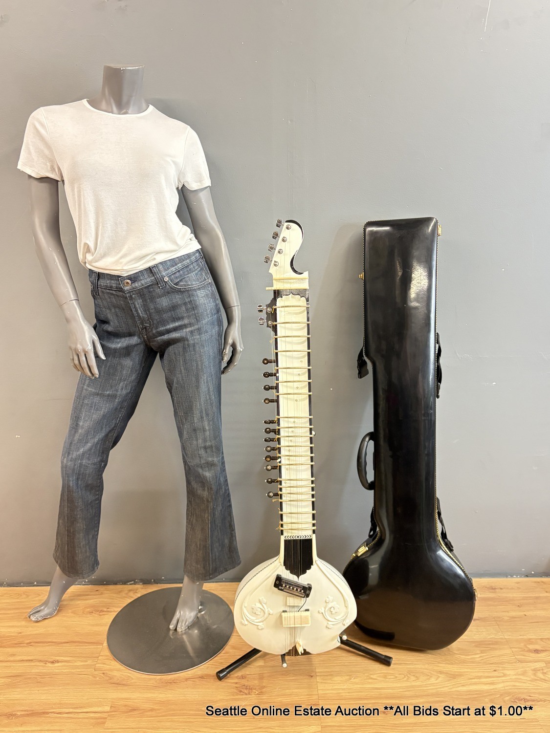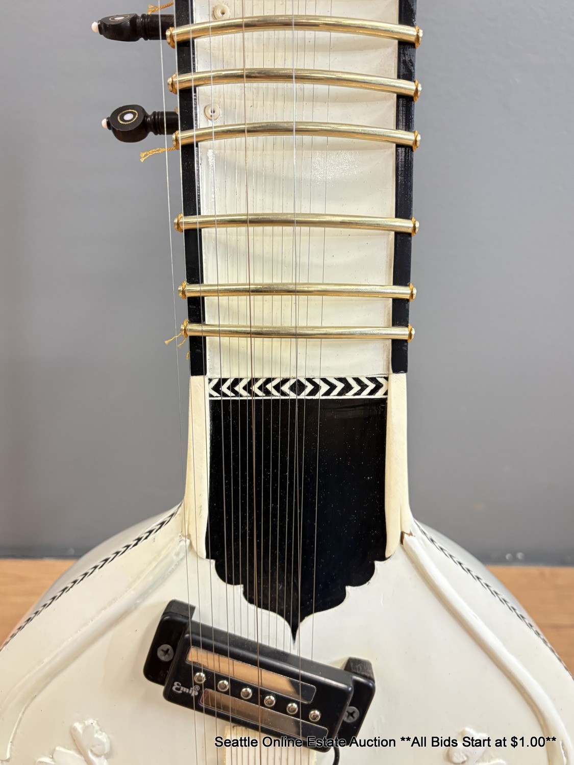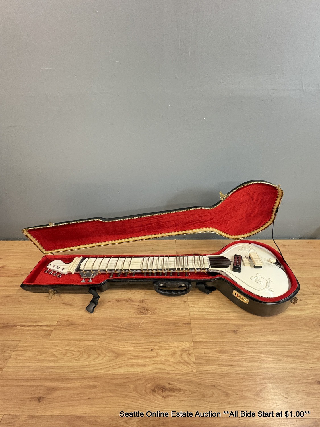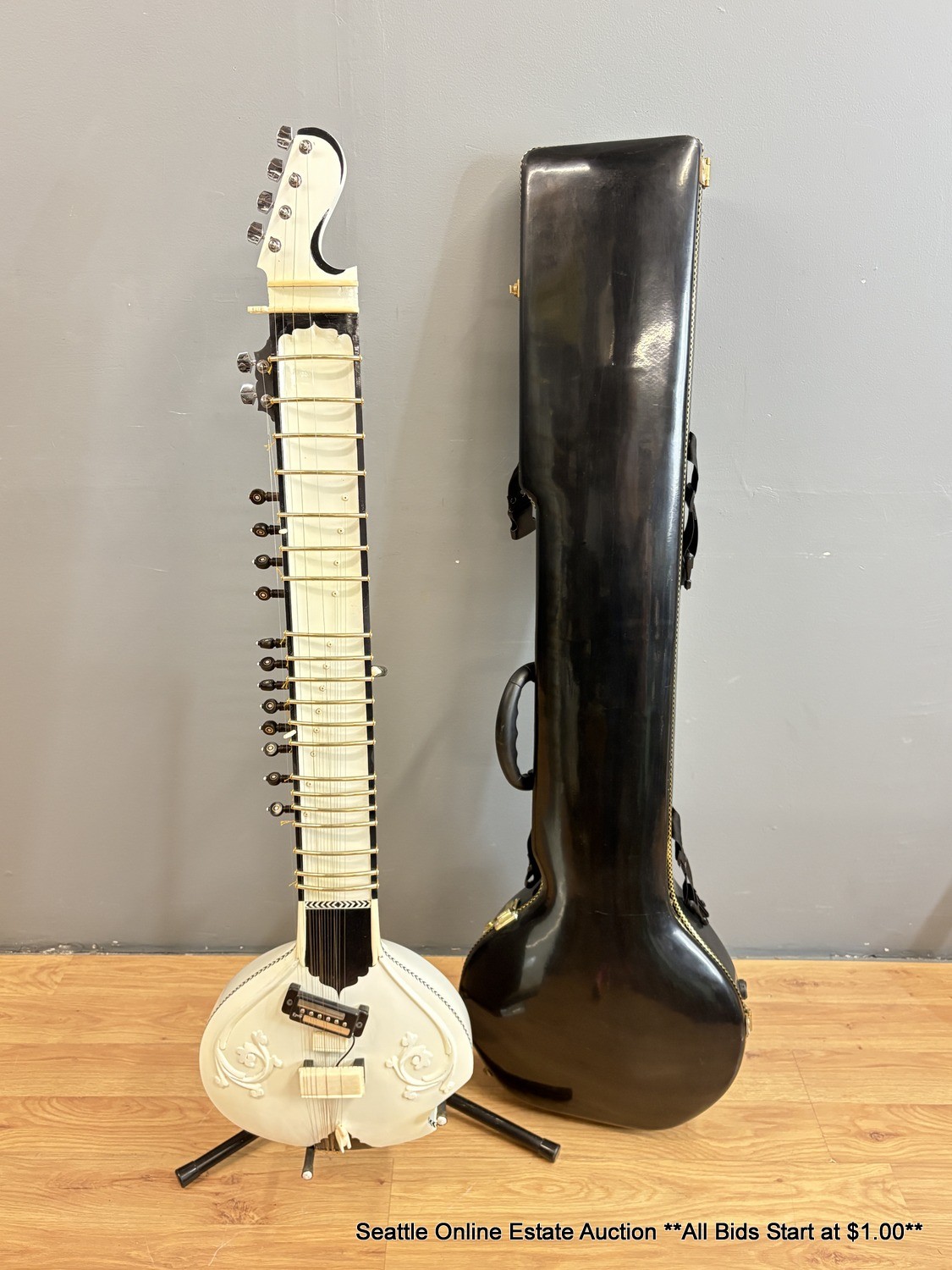 Black & White Electric Sitar With Padded Fiberglass Case