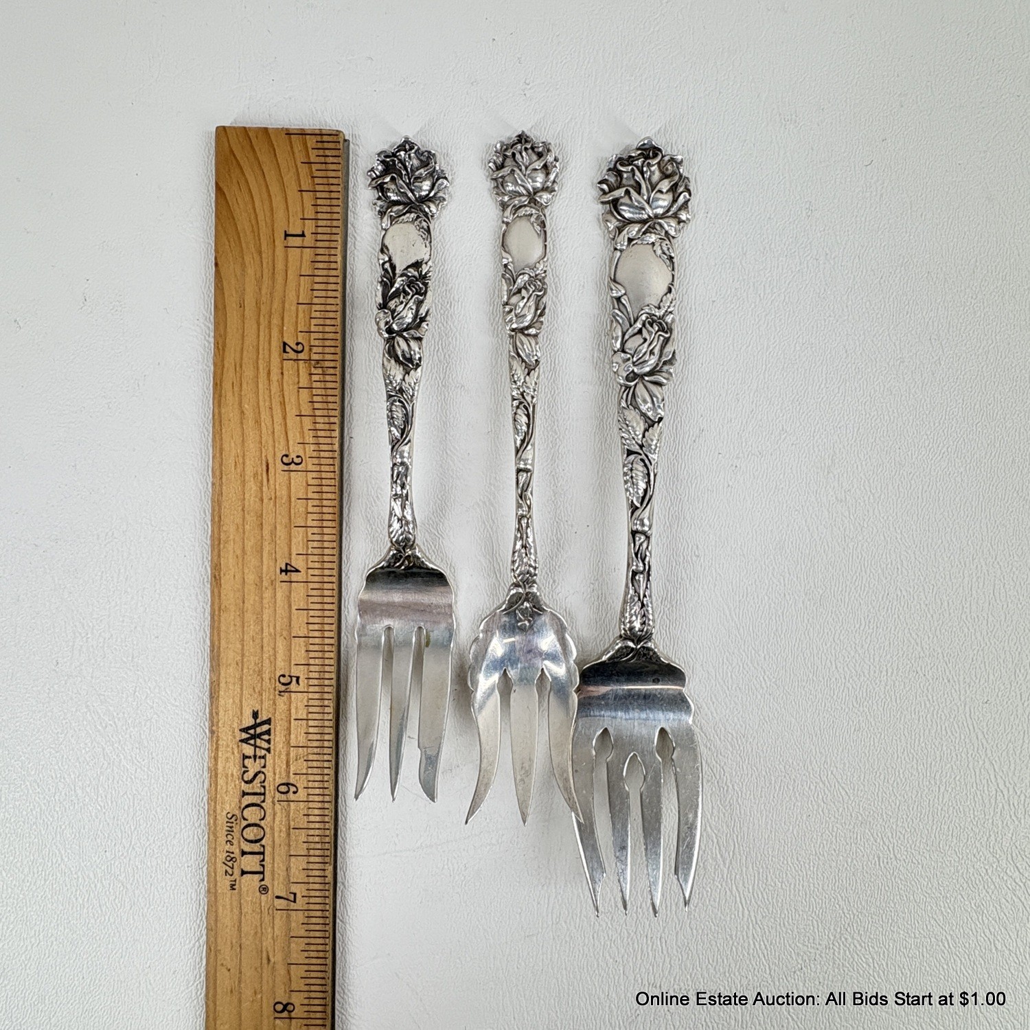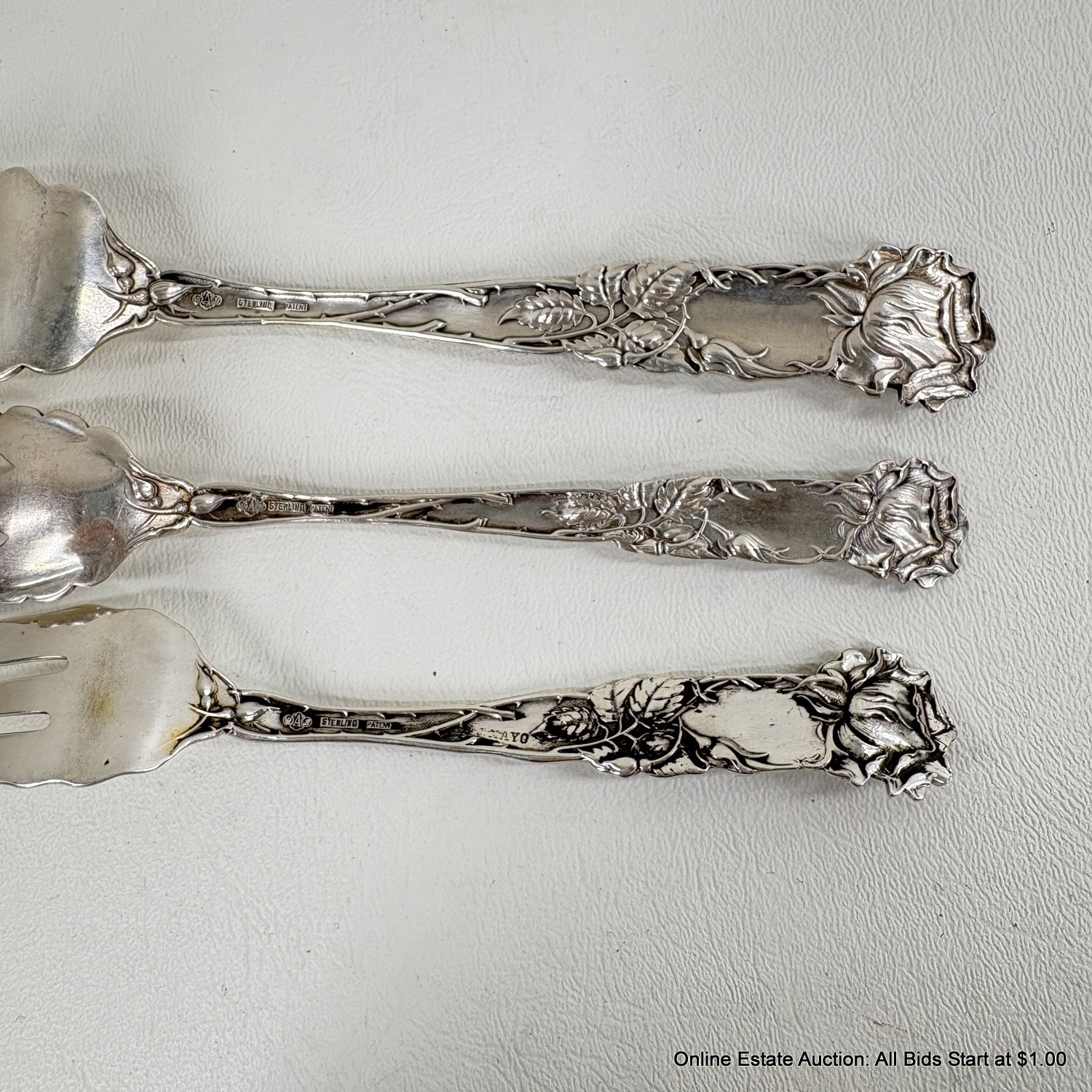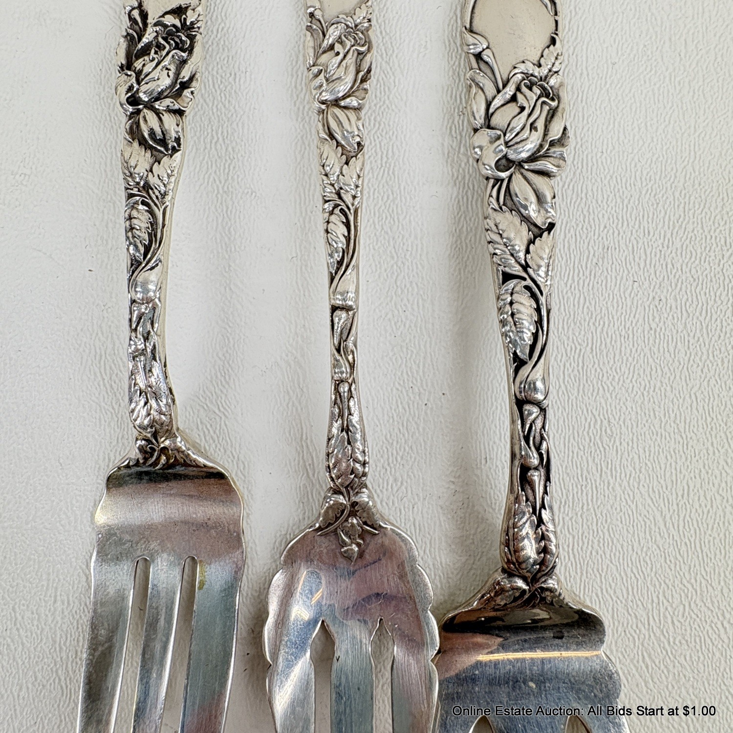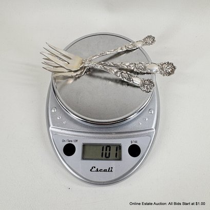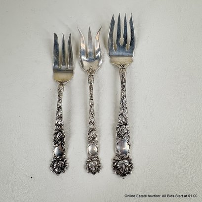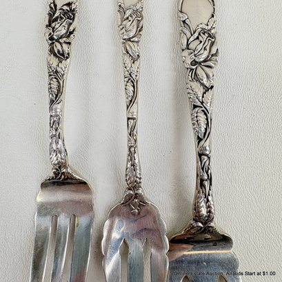 Bridal Rose By Alvin Sterling Silver Solid Fish Fork, Pasty Fork, And Old Style Pickle Fork