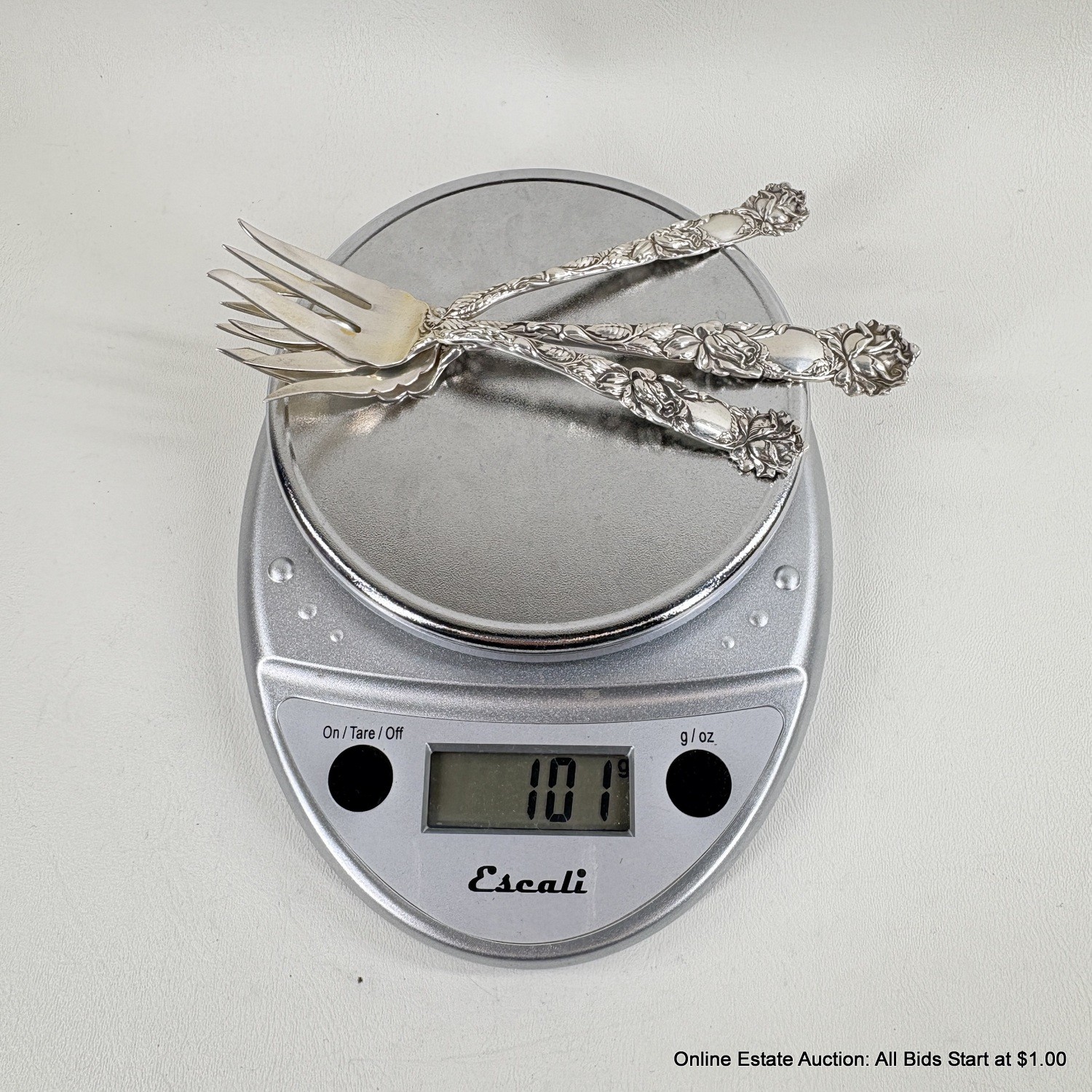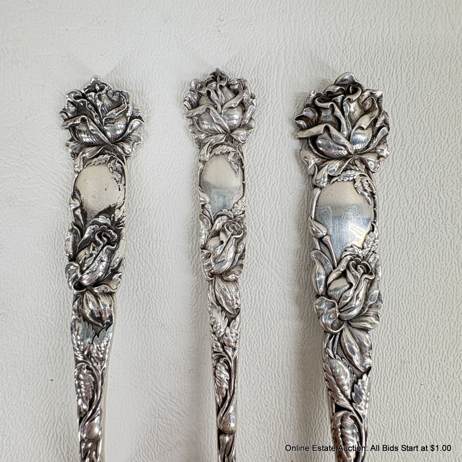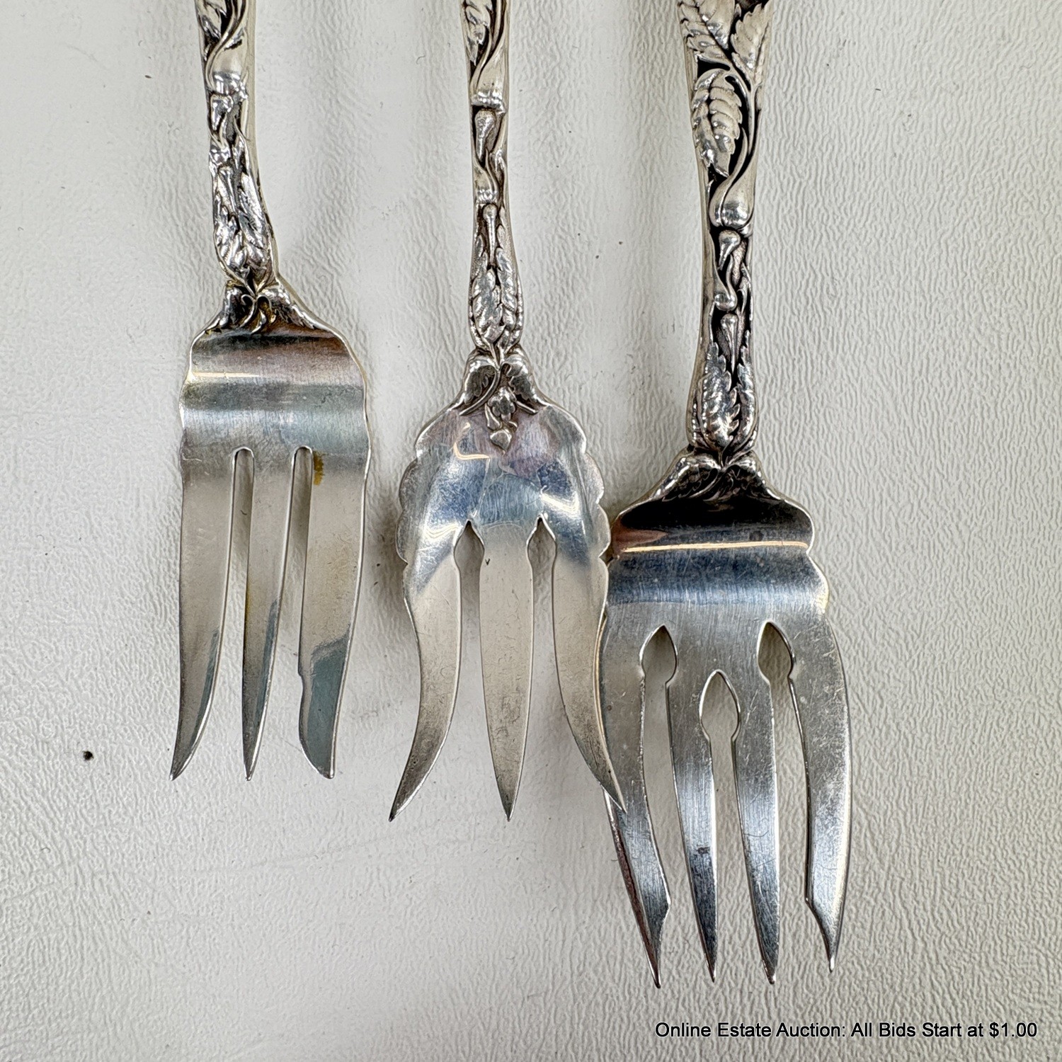 Bridal Rose By Alvin Sterling Silver Solid Fish Fork, Pasty Fork, And Old Style Pickle Fork