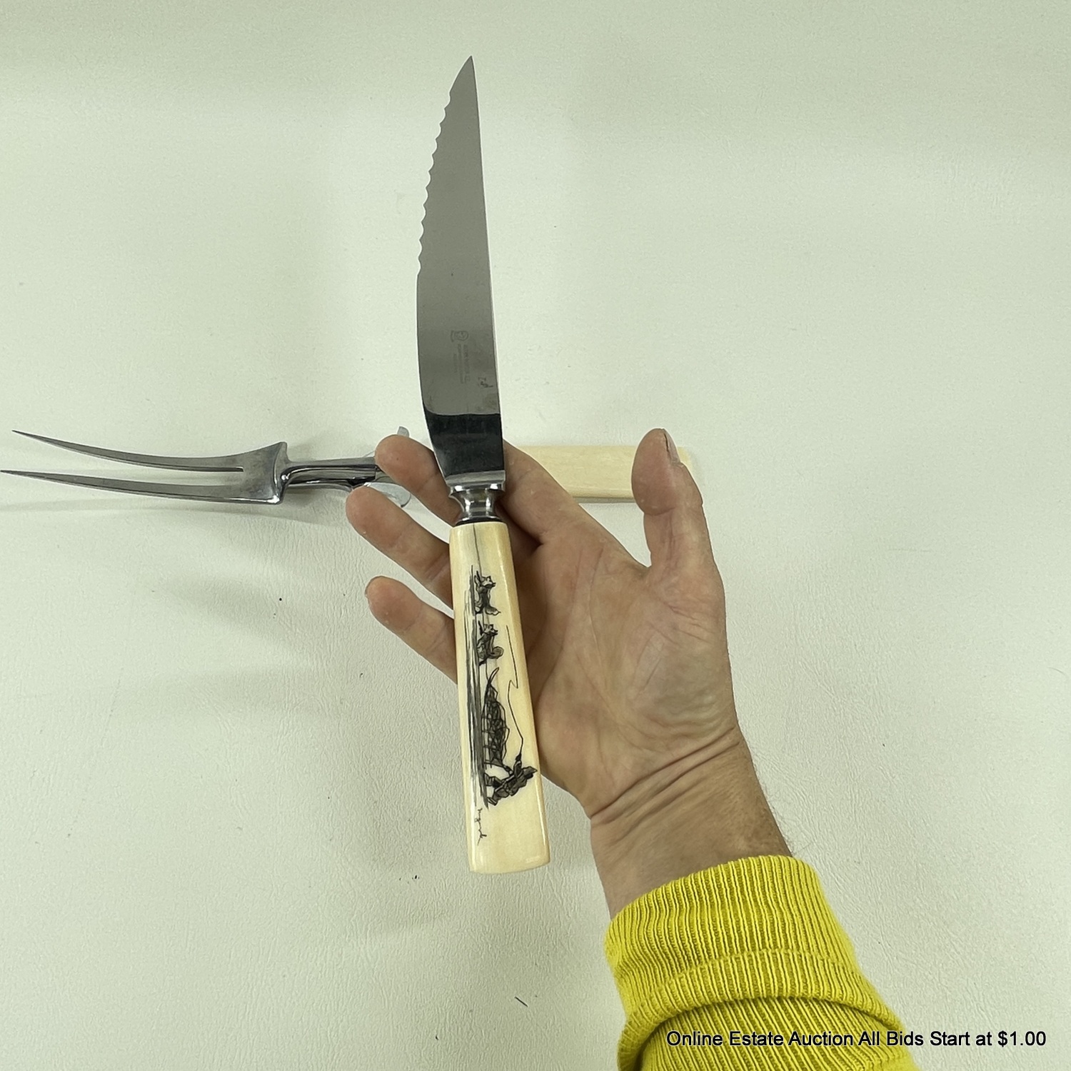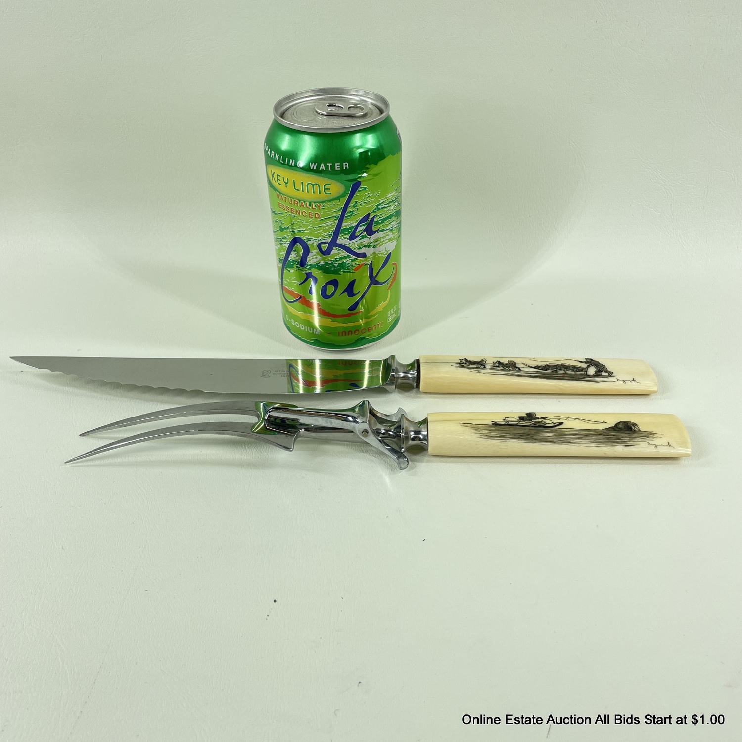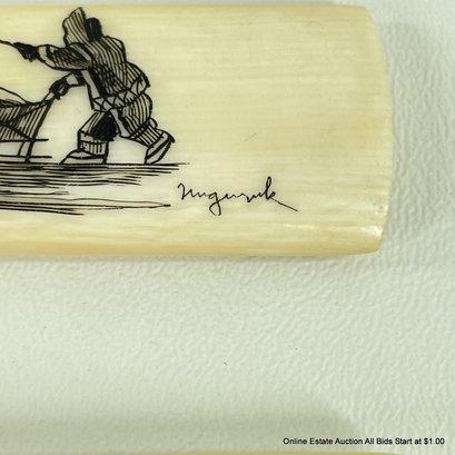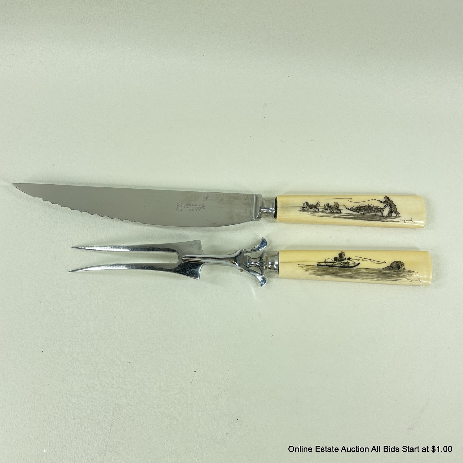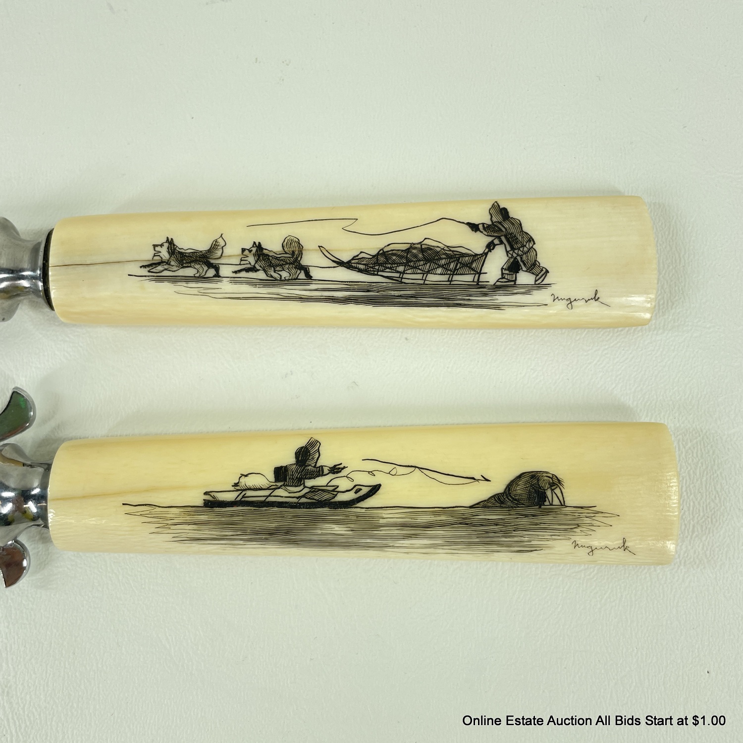 Carving Set with Scrimshaw by Howard Weyahok Handles