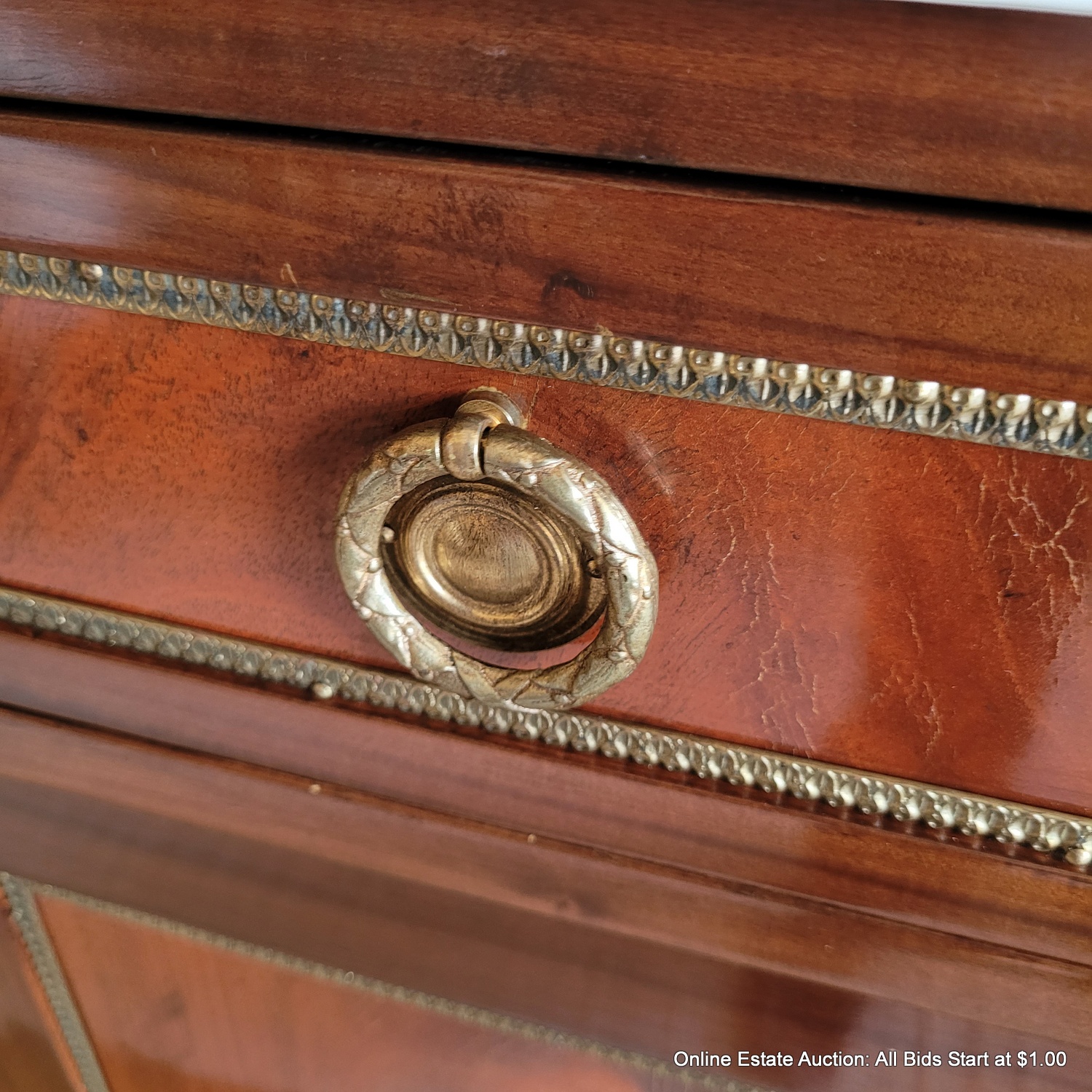 With Curved drawers and Doors, Minor crazing to doors and drawers, comes with 4 keys