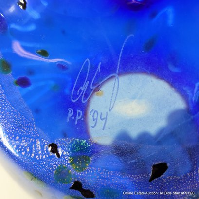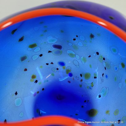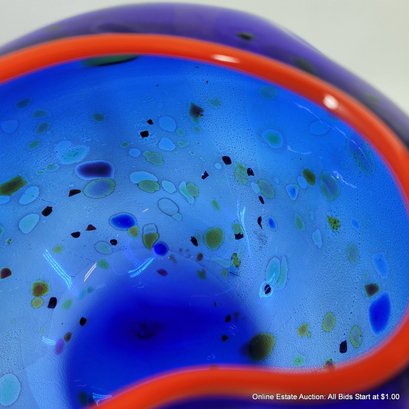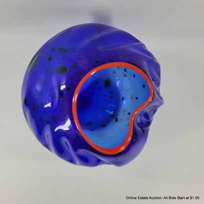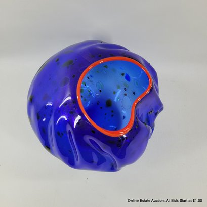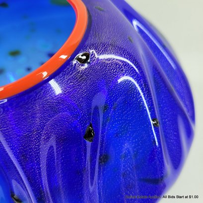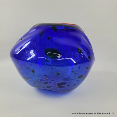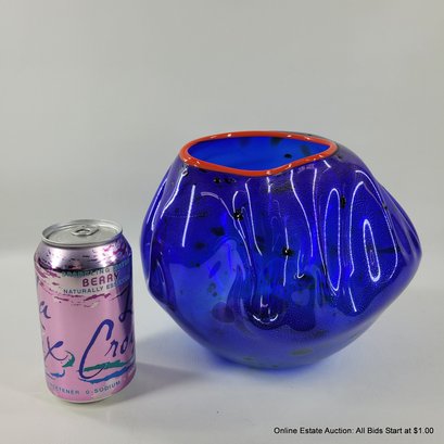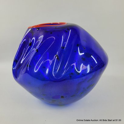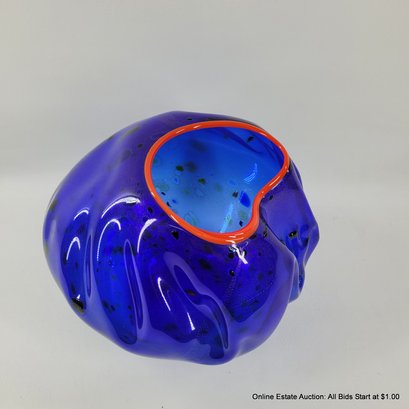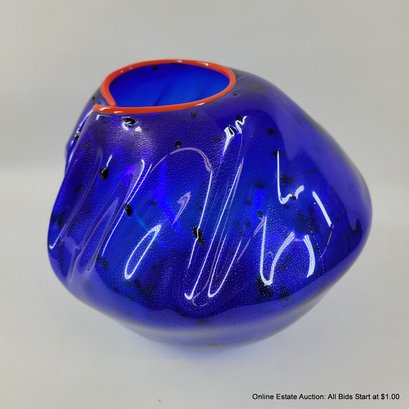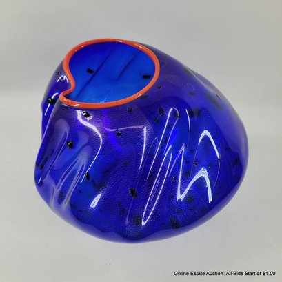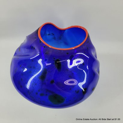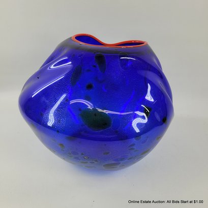 Dale Chihuly Cobalt Blue Macchia with Cadmium Red Lip Wrap 1994 Portland Press Edition.