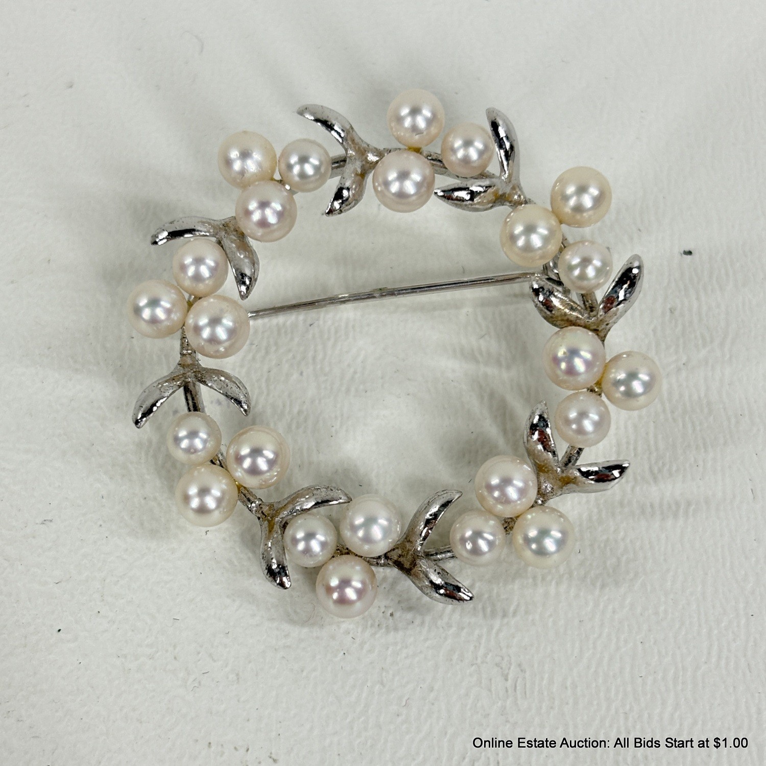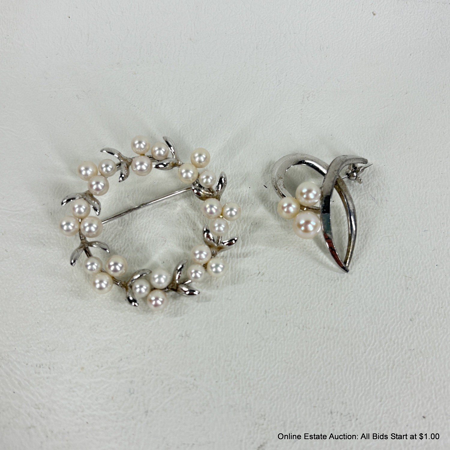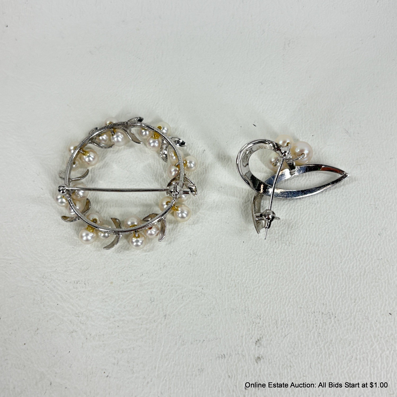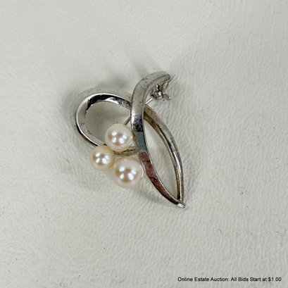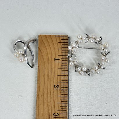 Faux Pearl and Silver Metal Brooch Pins