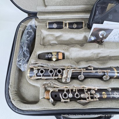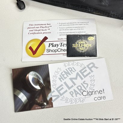 Henri Selmer Paris Wood Clarinet In Padded Zippered Case With Extra Reeds And Other Accessories