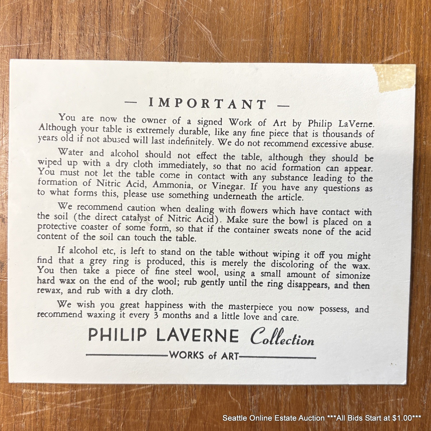 PICK-UP: All items need to be picked up in Tukwila, WA on Friday, April 24th & Saturday, April 25th from 10am until 2pm. Items not picked up during these hours will be subject to a $10 per day per item storage fee (unless previous arrangements have been made with us prior to the auction close) and/or forfeit of the item with no refunds or credit (see terms & conditions).