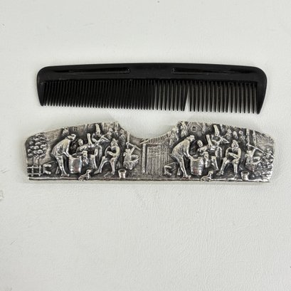 Plastic Comb With Silver Cover Marked Made In Denmark