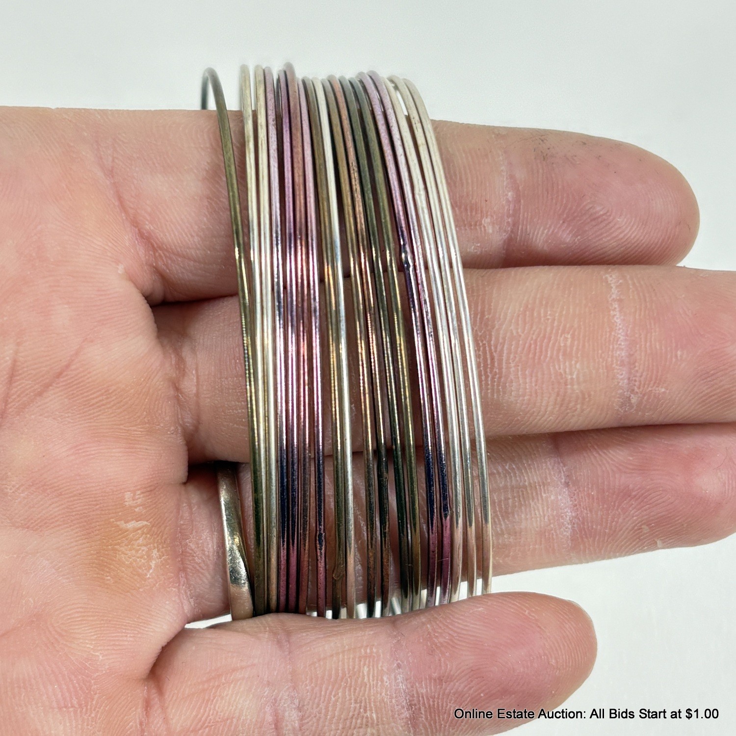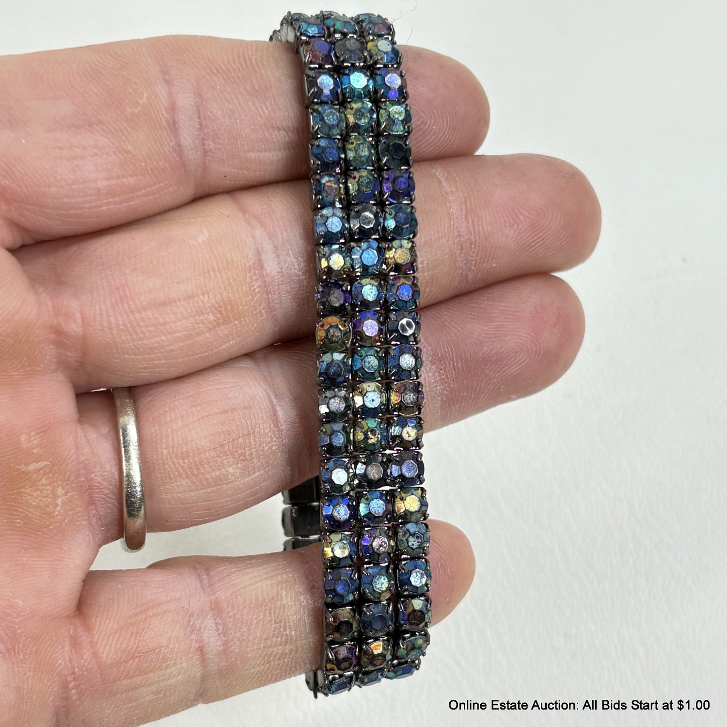 The Multi-colored pink bracelet is coiled, rhinestone bracelet is elastic