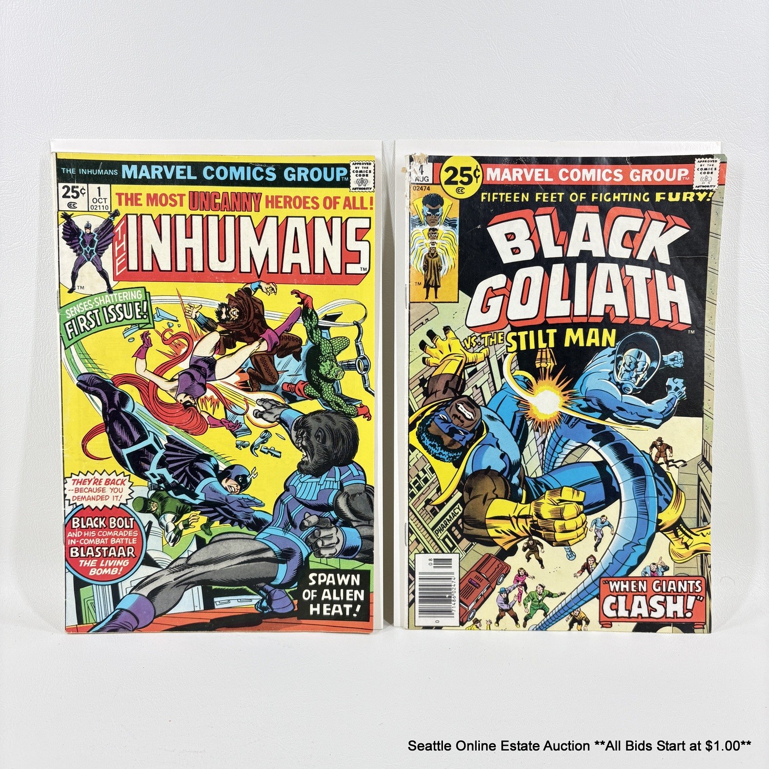 Marvel The Inhumans No. 1 And Black Goliath Vs. The Stilt Man No. 4 Comic Books With 25 Cent Price Cover