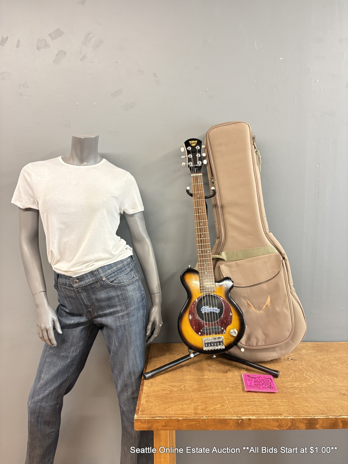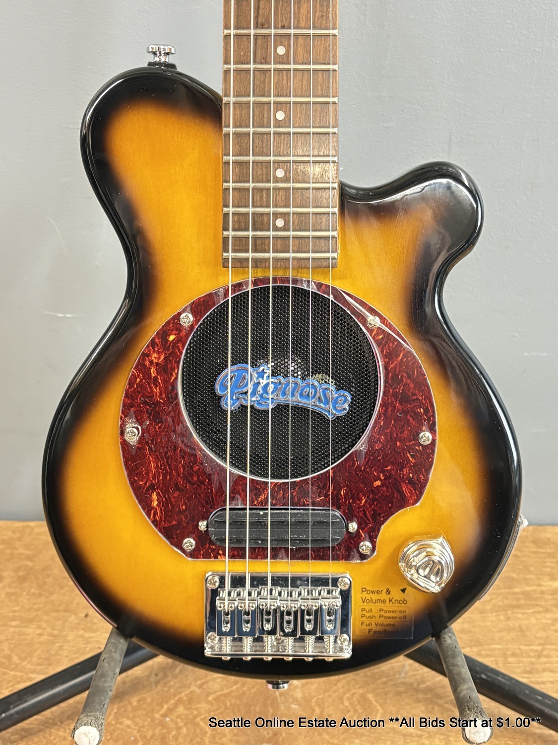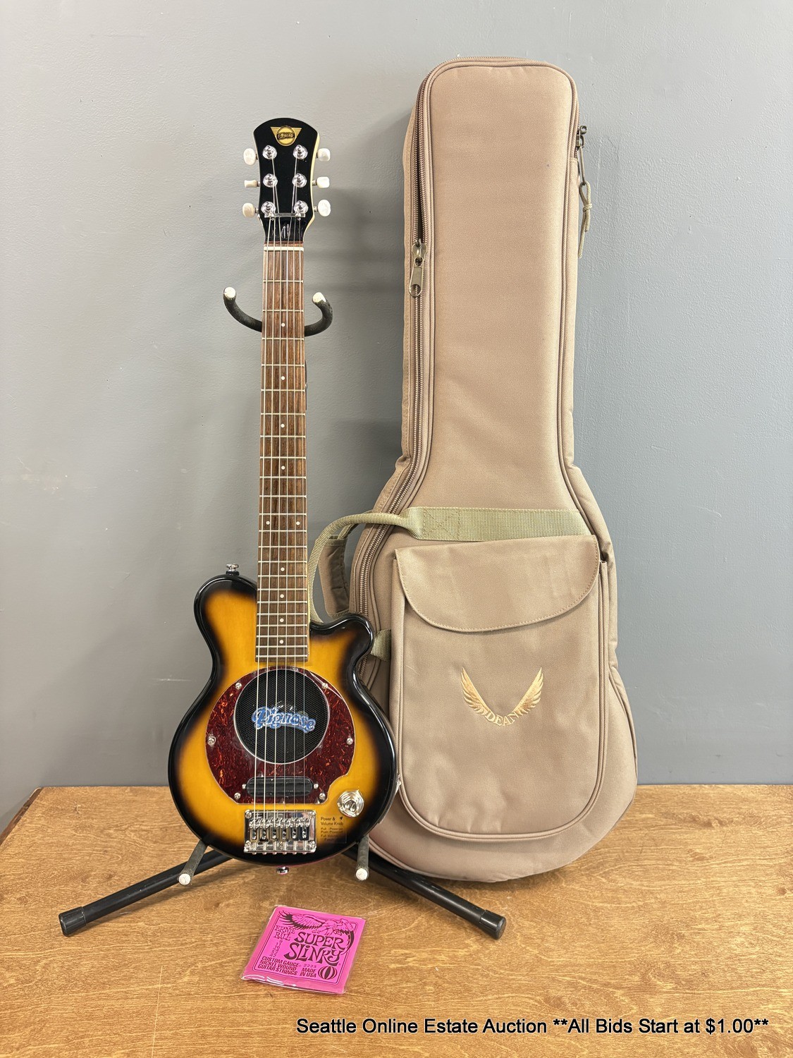 Pignose PGG-200 Mini Electric Travel Guitar With Built-In Amplifier And A Dean Padded Soft-Sided Case